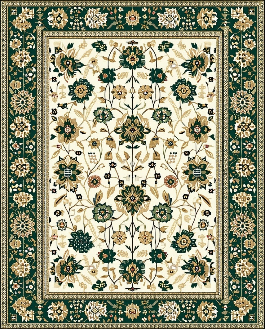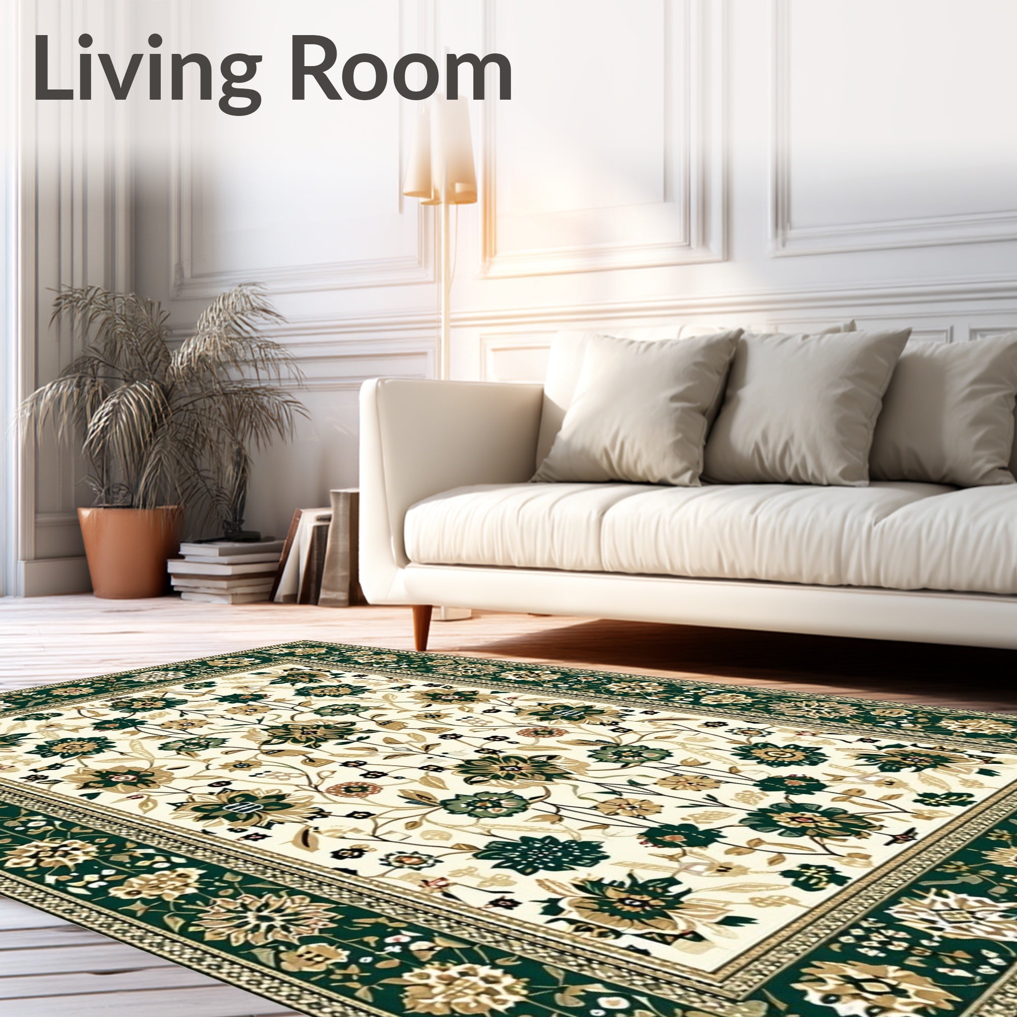 Ultra Soft Area Rug, Non Slip, Stain Resistant, Washable Area Rugs for Living Room, Bedroom, Floral with Beige and Green(White) Overview: