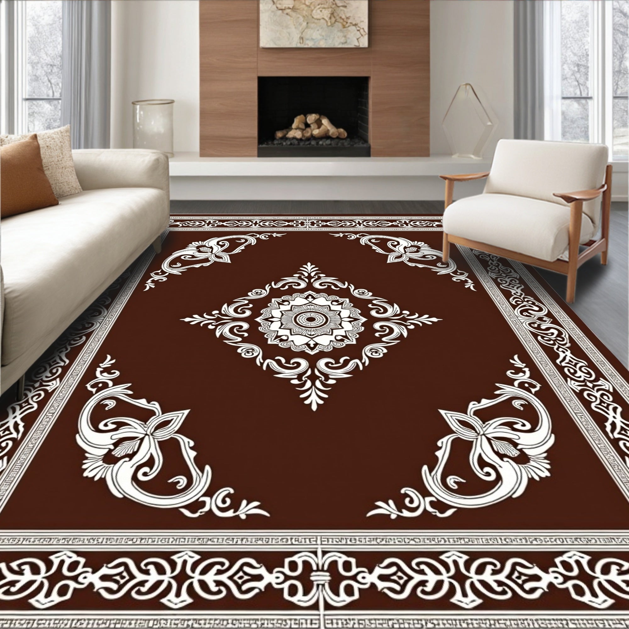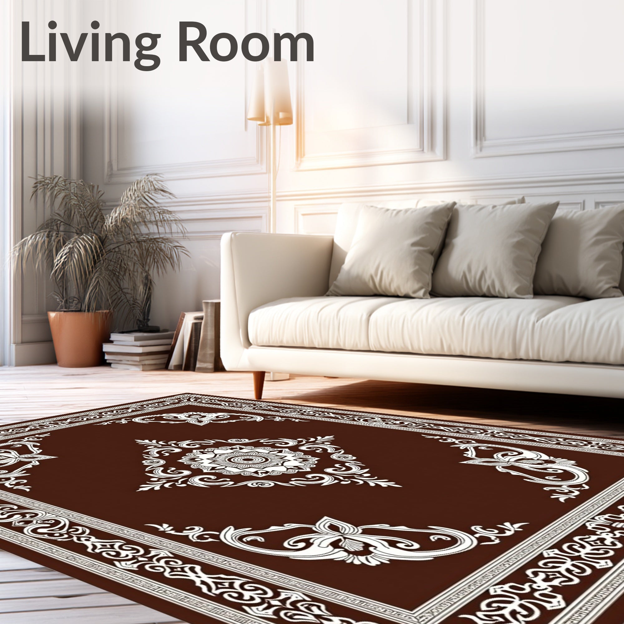 Flatwoven High Traffic Area Rug, Florence Paisley Medallion with Scrollwork Motifs Interlocking Design, Non Slip, Stain Resistant, Washable Area Rugs for Living Room, Bedroom (Brown) Overview: