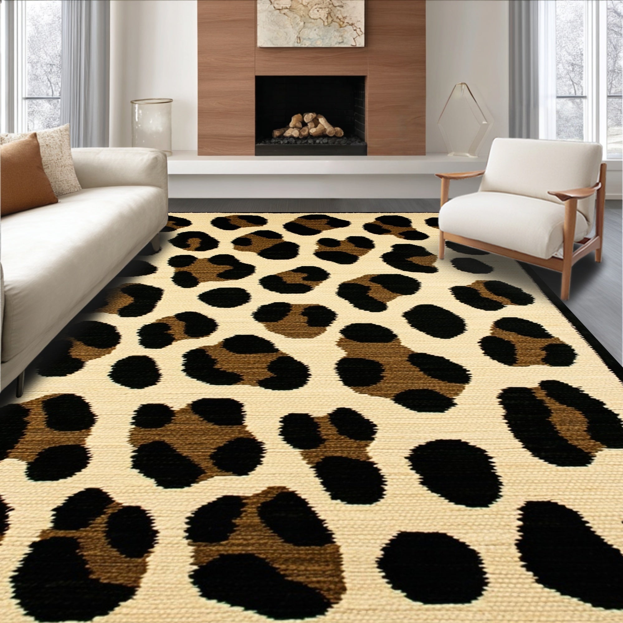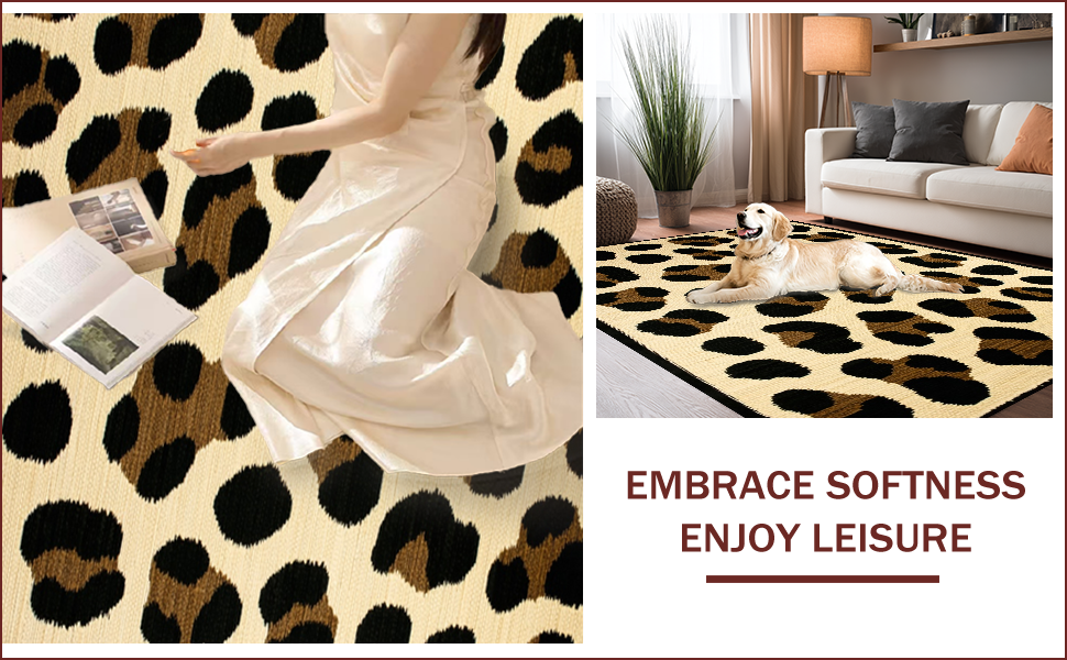 Ultra Soft Area Rug, Non Slip, Stain Resistant, Washable Area Rugs for Living Room, Bedroom, Fluffy Leopard Print Faux Fur(Beige) Overview: