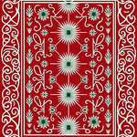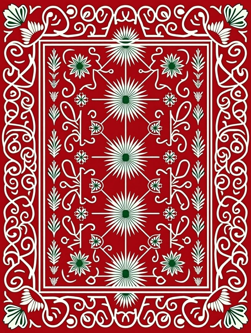 Folk Starburst Medallion Interlocking with Winter Botanical Scrolls(Red)
