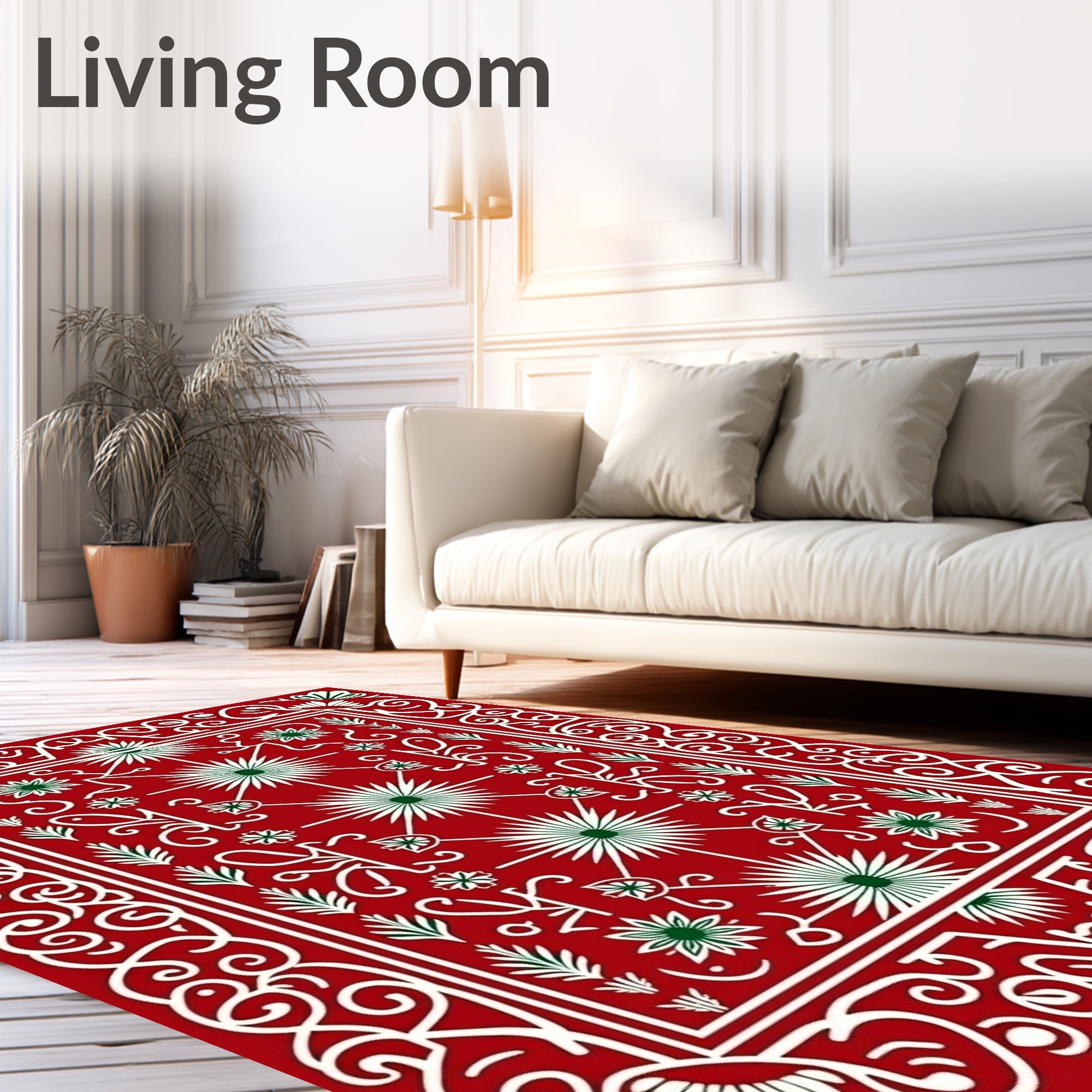 Flatwoven High Traffic Area Rug, Folk Starburst Medallion Interlocking with Winter Botanical Scrolls, Non Slip, Stain Resistant, Washable Area Rugs for Living Room, Bedroom (Red) Overview: