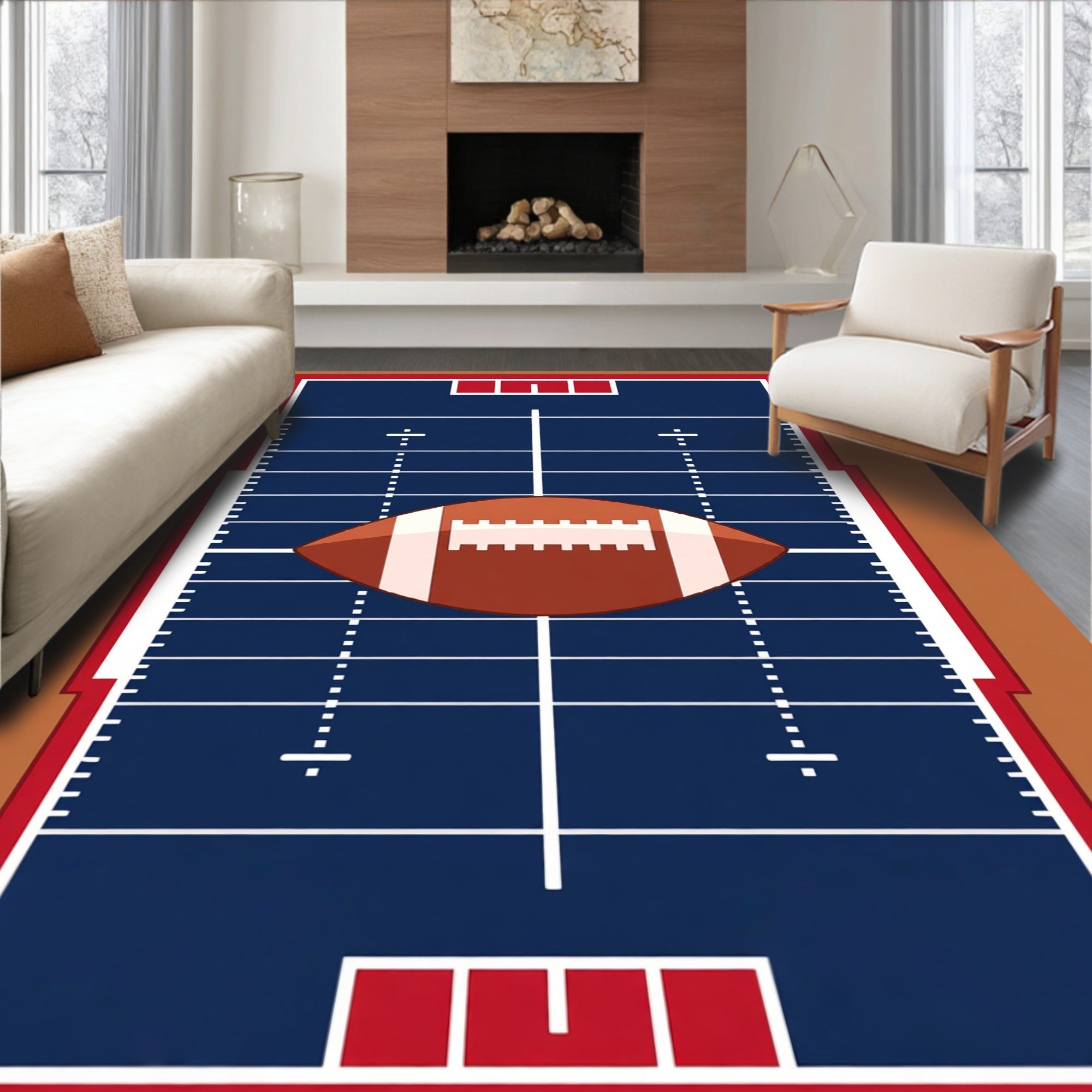 Ultra Soft Area Rug, Non Slip, Stain Resistant, Washable Area Rugs for Living Room, Bedroom, Football Field Gridiron Central Ball(blue) Overview: