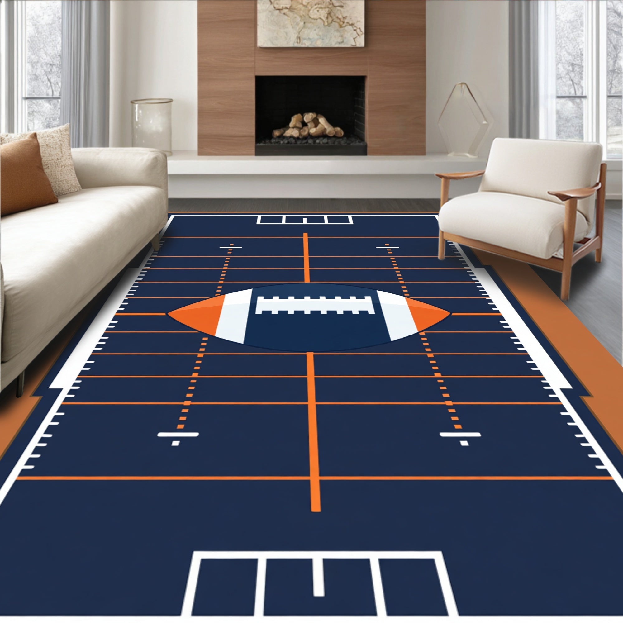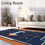 Ultra Soft Area Rug, Non Slip, Stain Resistant, Washable Area Rugs for Living Room, Bedroom, Football Field Gridiron Yard Lines Ball Design(blue) Overview: