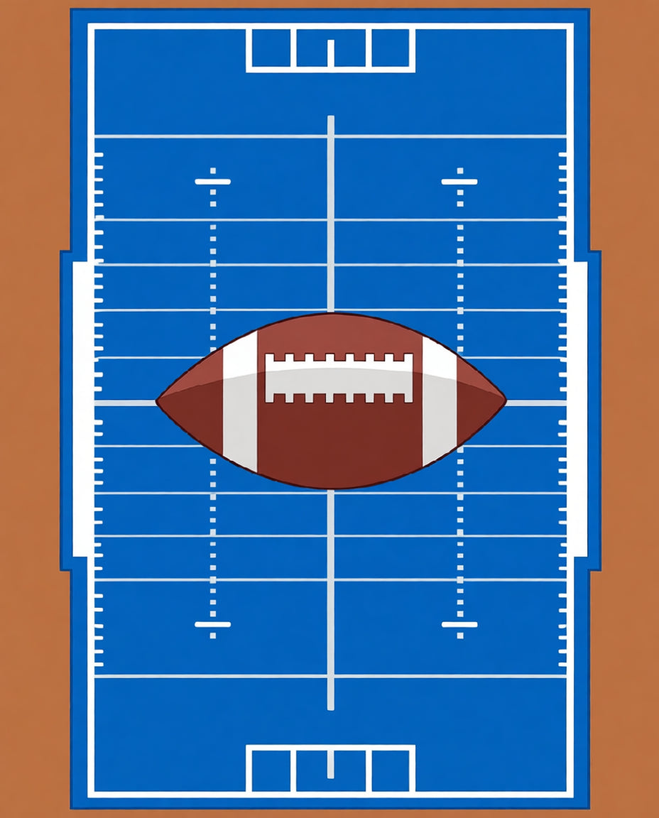 Football Field Gridiron Yard Lines Ball Motif(Blue)