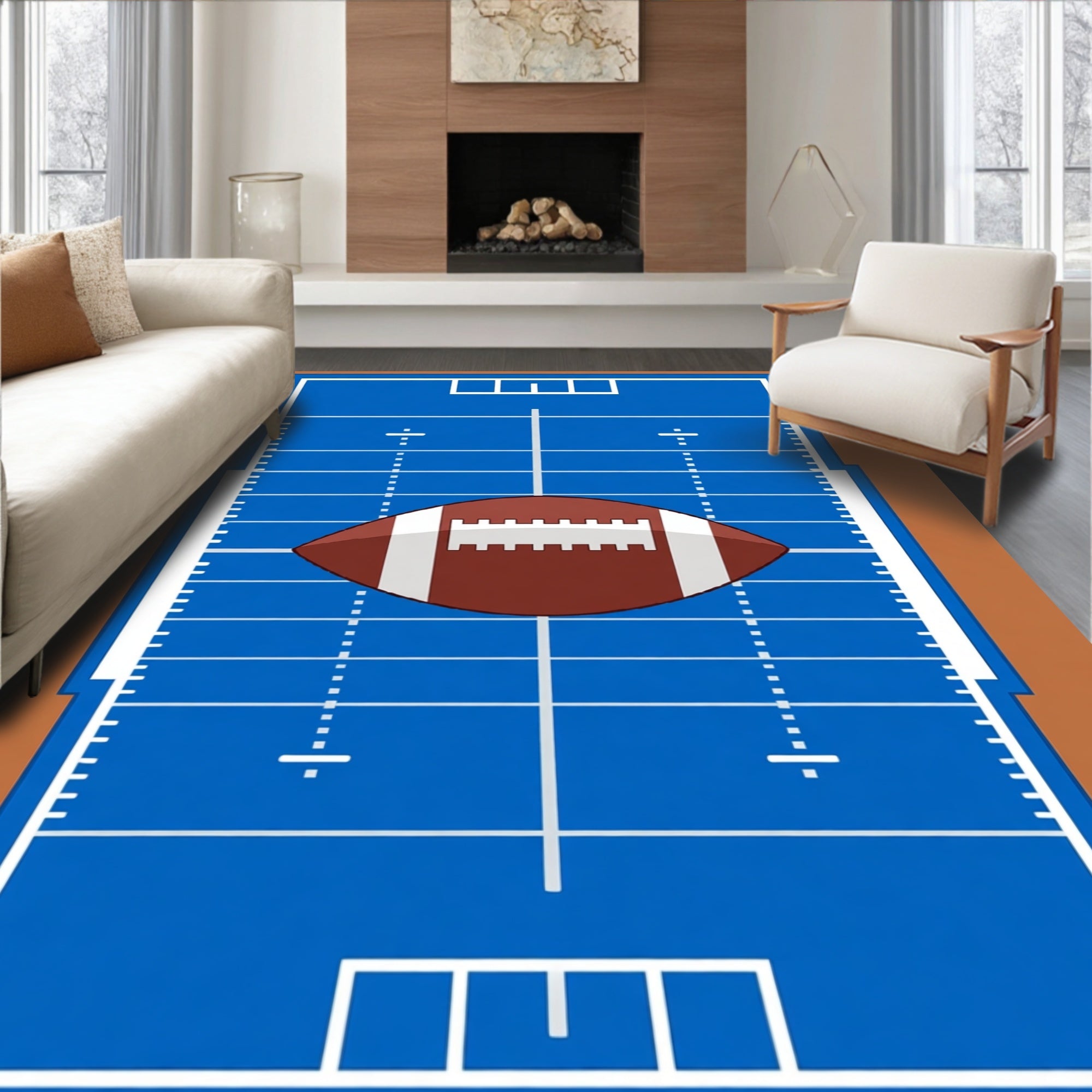Ultra Soft Area Rug, Non Slip, Stain Resistant, Washable Area Rugs for Living Room, Bedroom, Football Field Gridiron Yard Lines Ball Motif(blue) Overview: