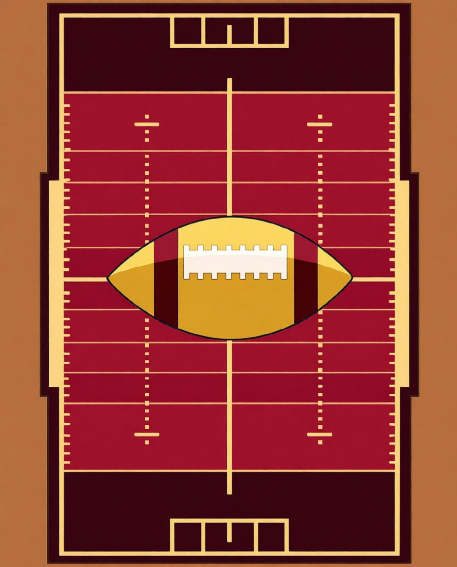 Football Field Gridiron Yard Lines Central Ball Design(Red)