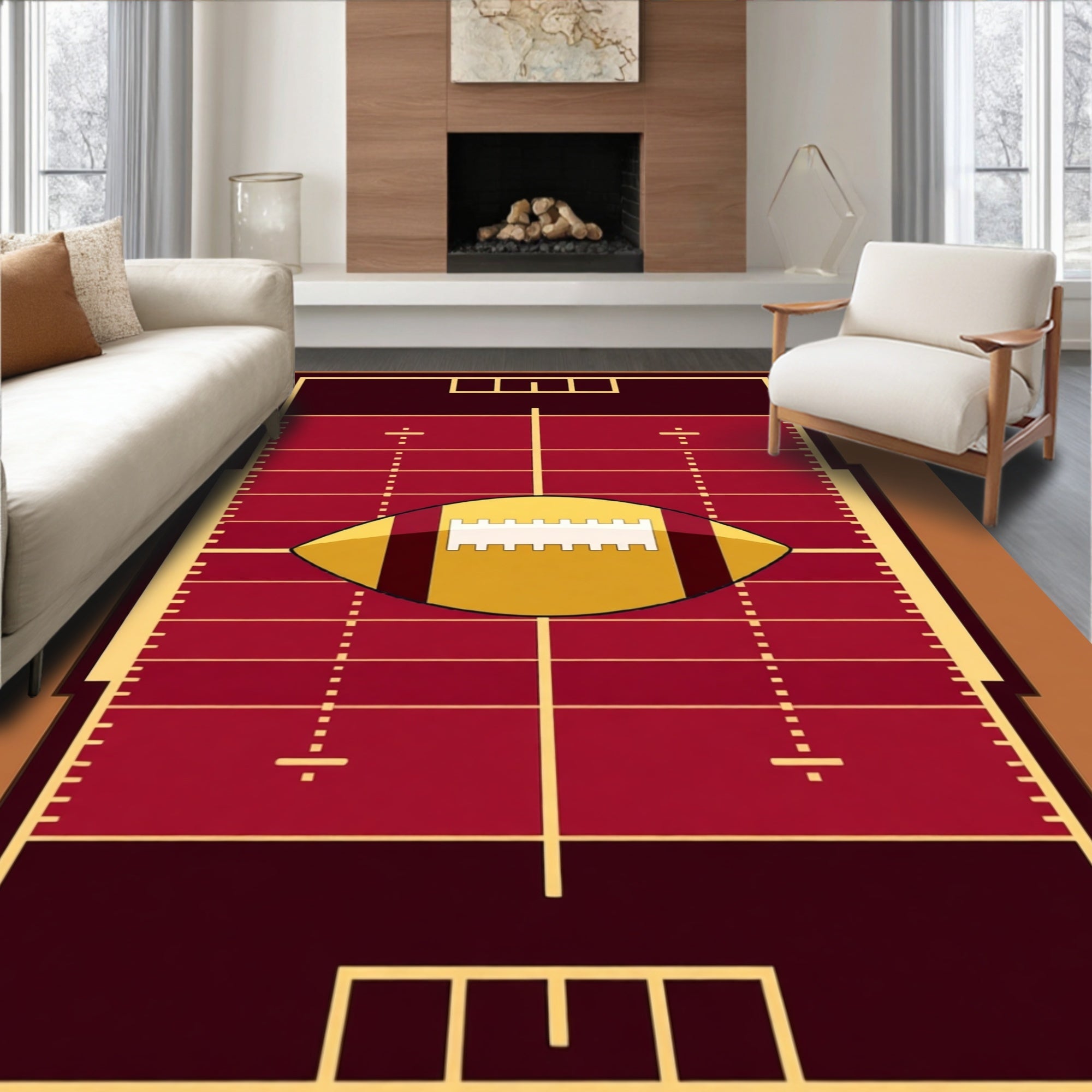 Ultra Soft Area Rug, Non Slip, Stain Resistant, Washable Area Rugs for Living Room, Bedroom, Football Field Gridiron Yard Lines Central Ball Design(red) Overview: