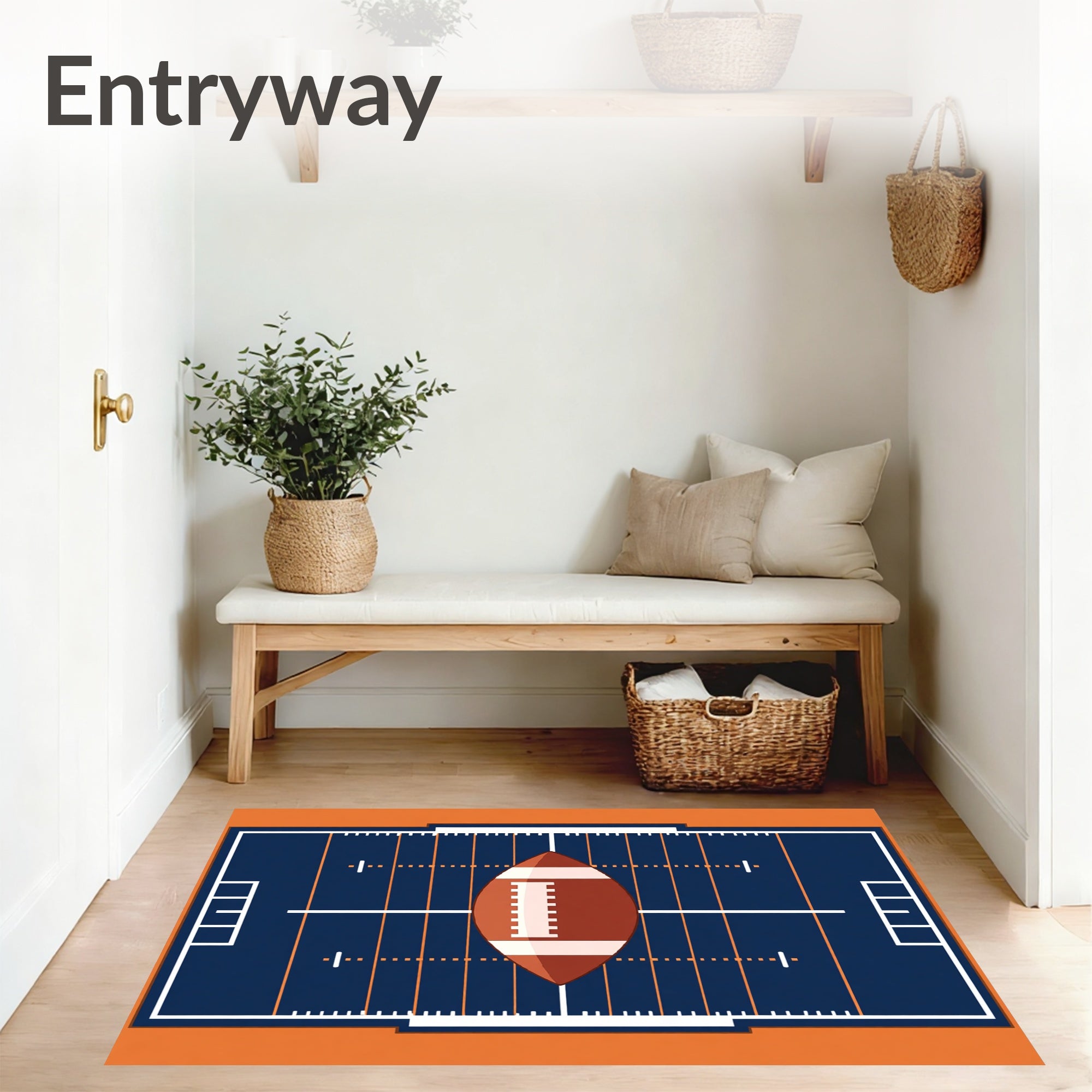 Ultra Soft Area Rug, Non Slip, Stain Resistant, Washable Area Rugs for Living Room, Bedroom, Football Field Gridiron(blue) Overview: