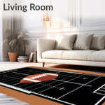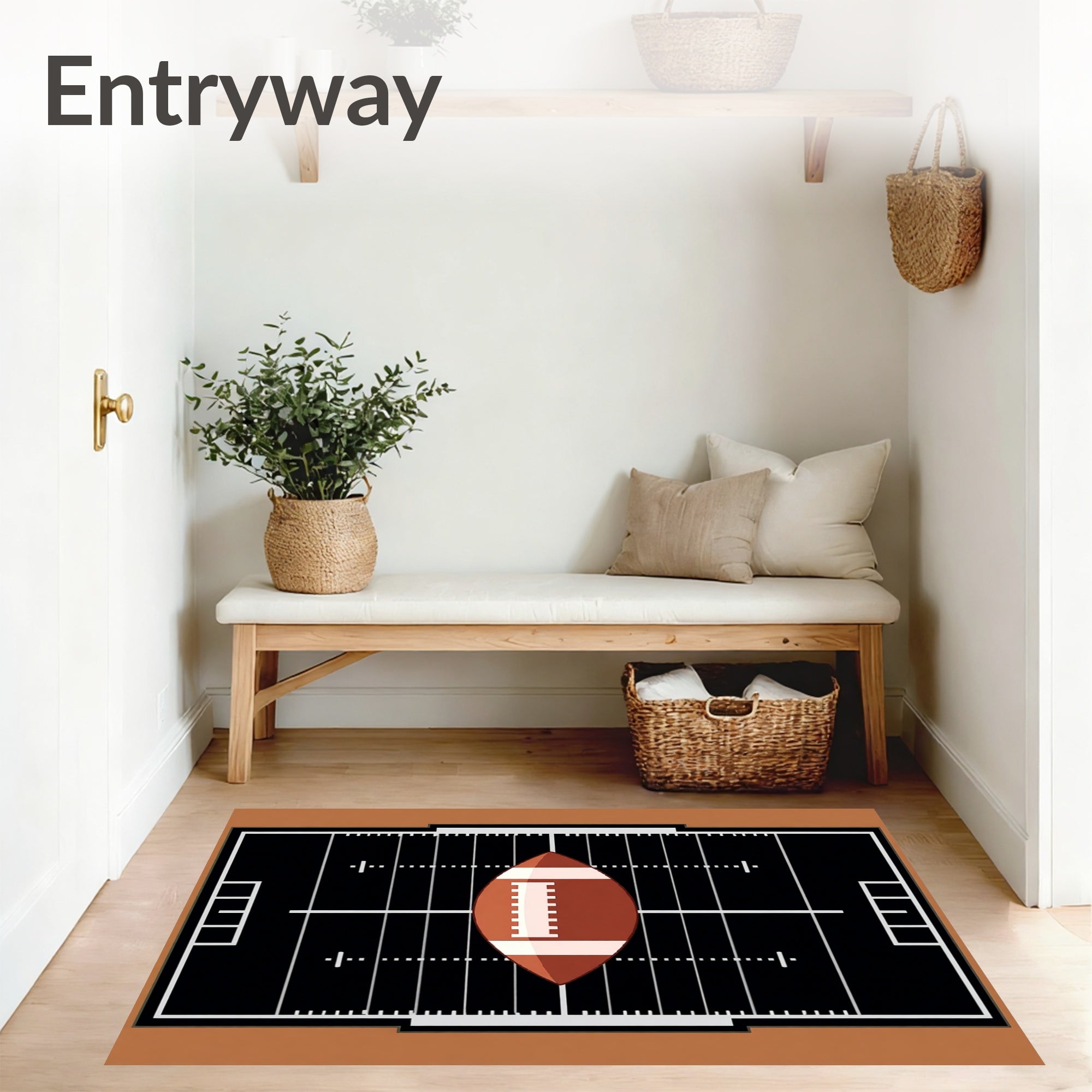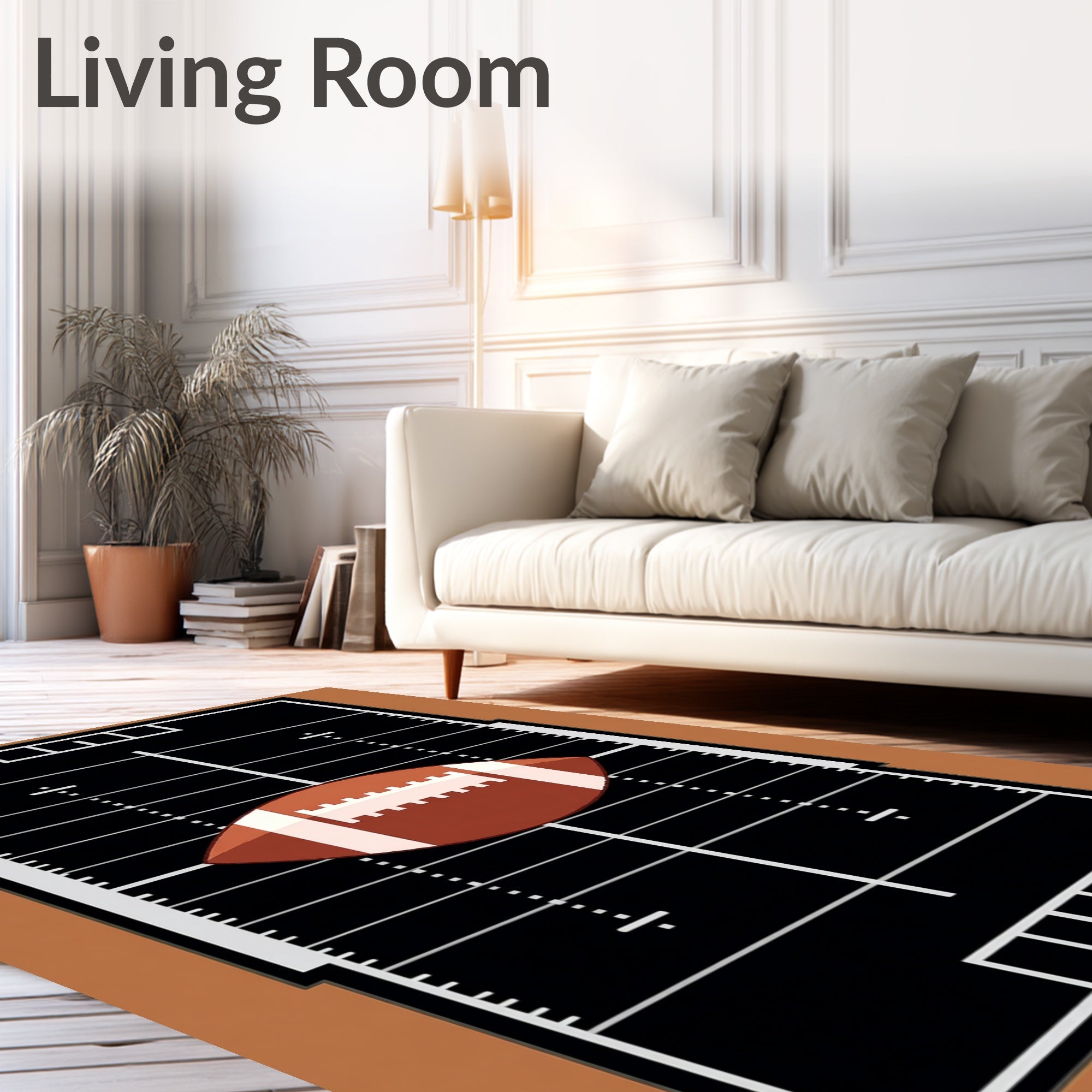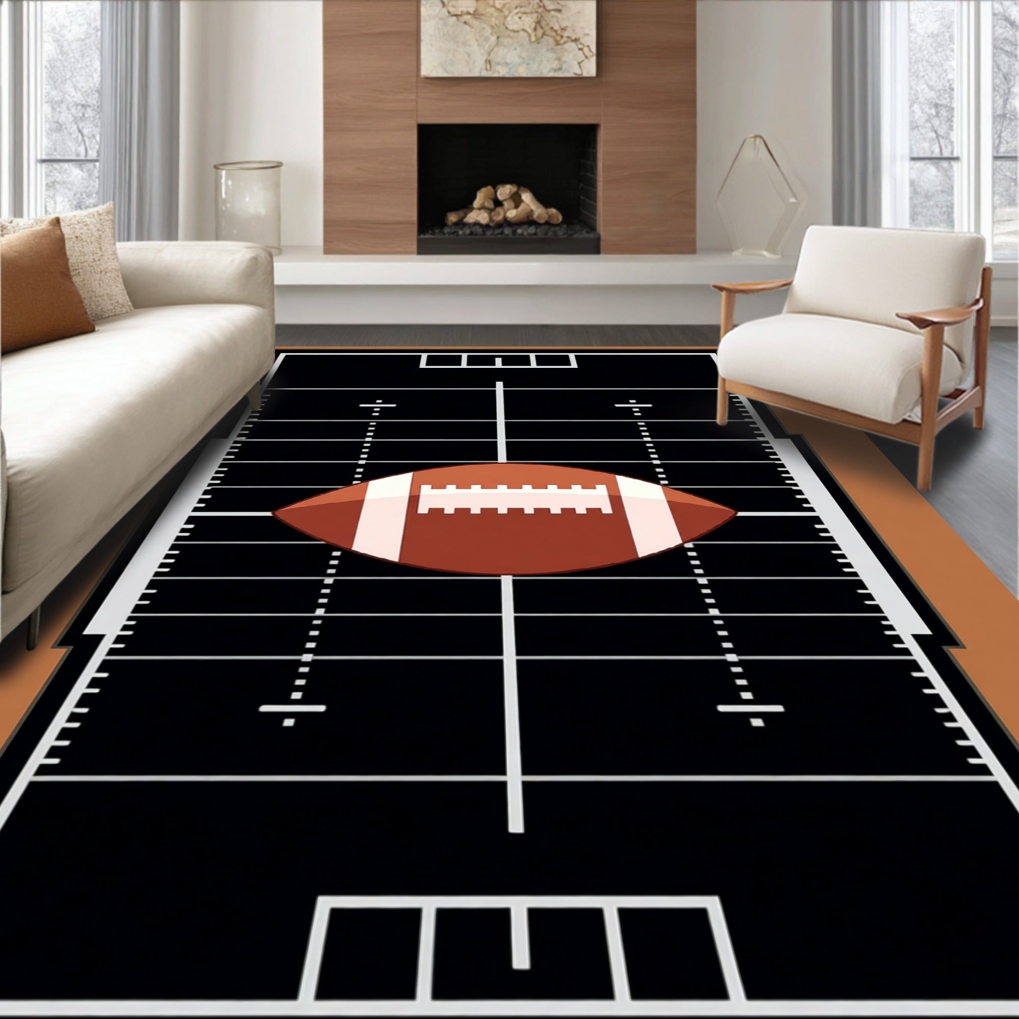 Ultra Soft Area Rug, Non Slip, Stain Resistant, Washable Area Rugs for Living Room, Bedroom, Football Field Yard Lines Central Ball Motif(black) Overview: