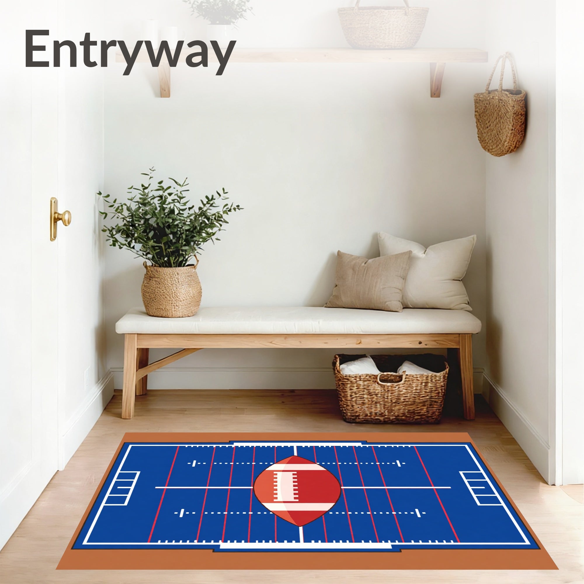 Ultra Soft Area Rug, Non Slip, Stain Resistant, Washable Area Rugs for Living Room, Bedroom, Football Field Yard Lines Central Ball(blue) Overview: