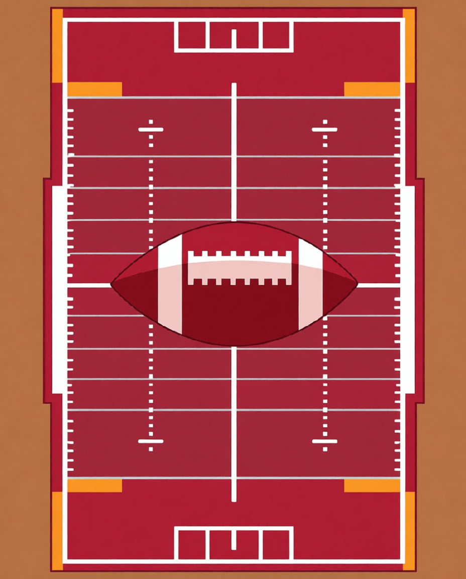 Football Field Yard Lines Hash Marks Ball Design(Red)