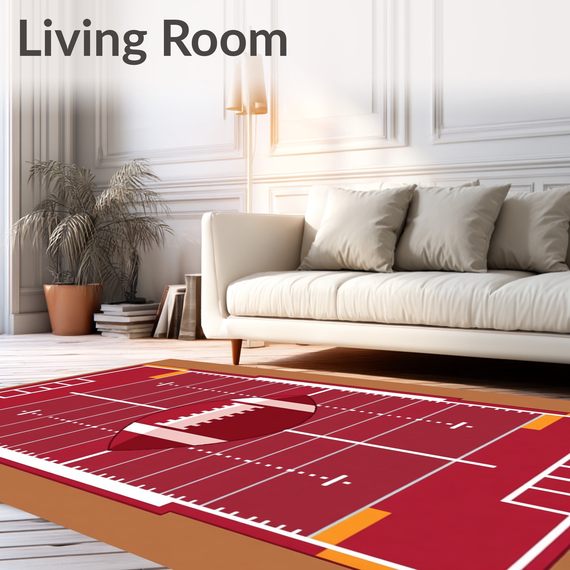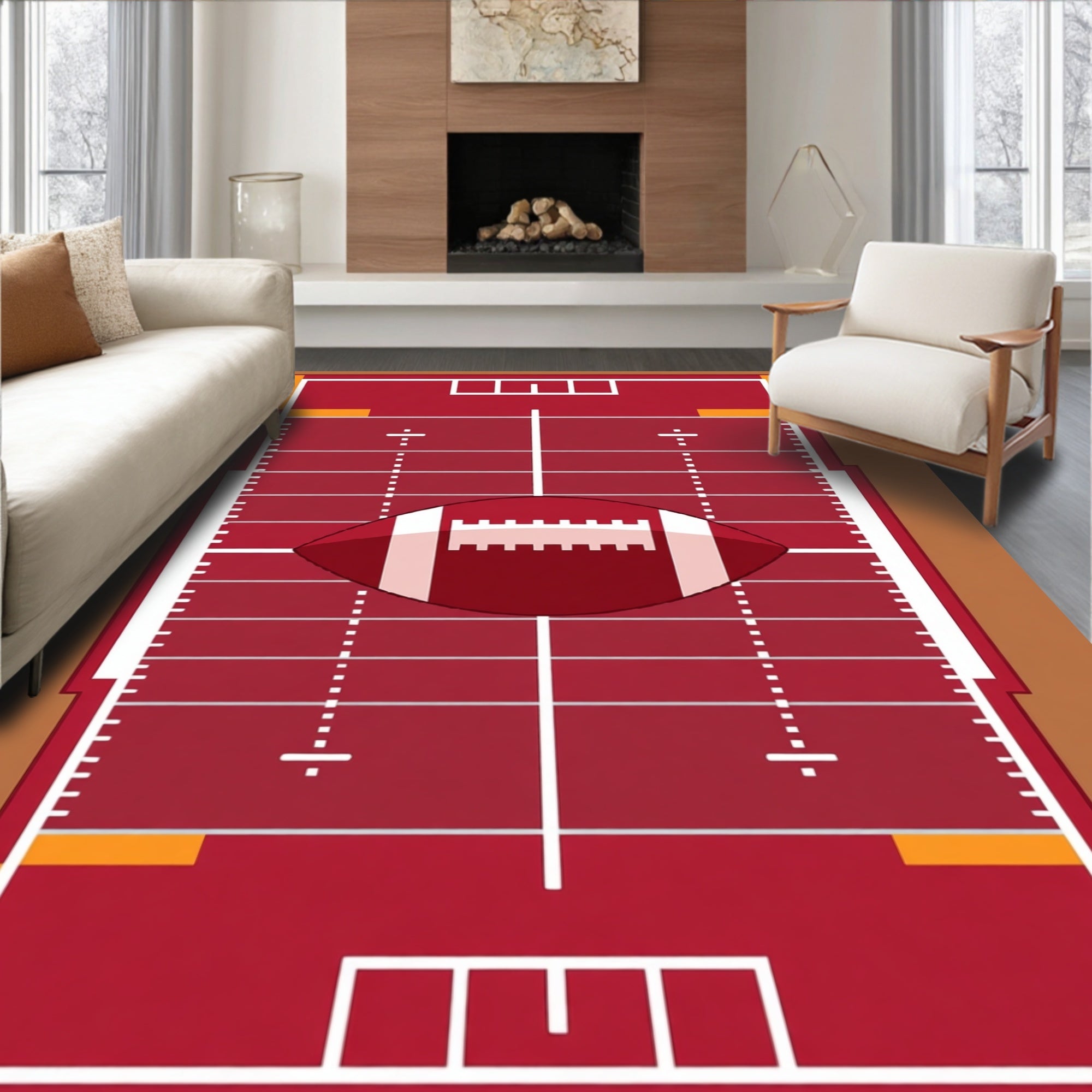 Ultra Soft Area Rug, Non Slip, Stain Resistant, Washable Area Rugs for Living Room, Bedroom, Football Field Yard Lines Hash Marks Ball Design(red) Overview: