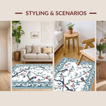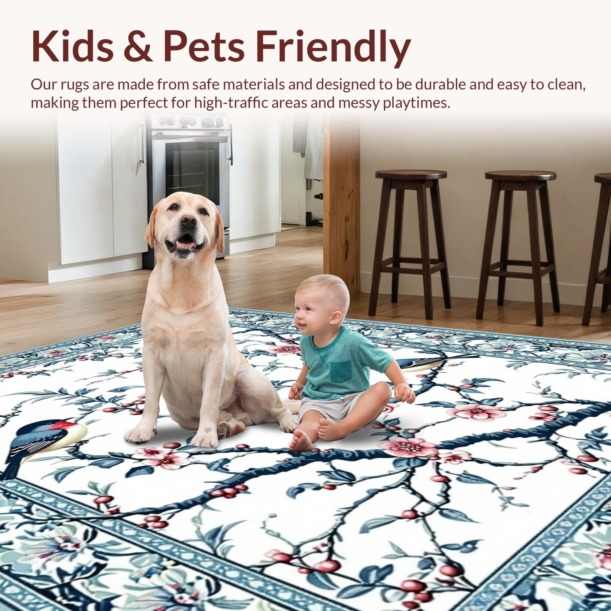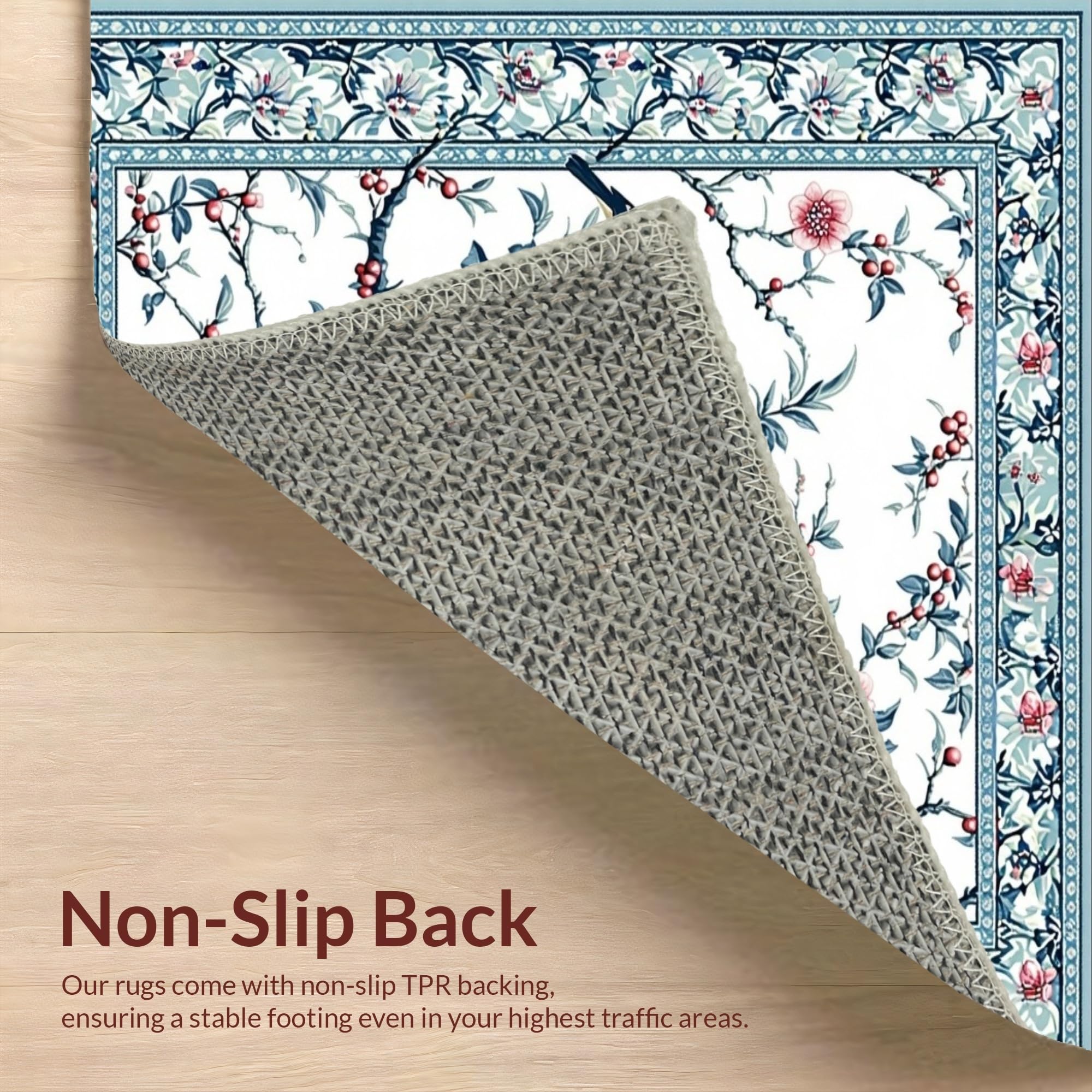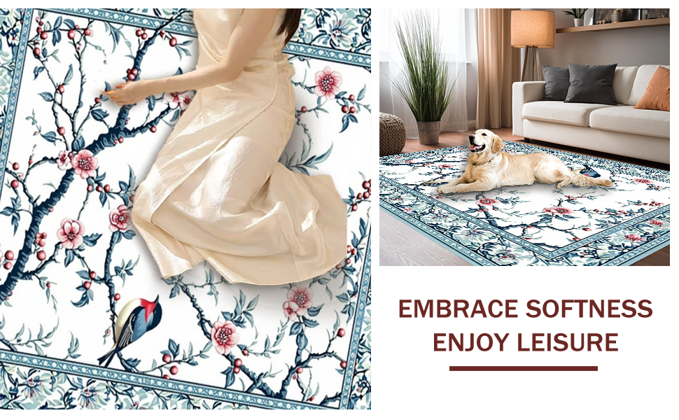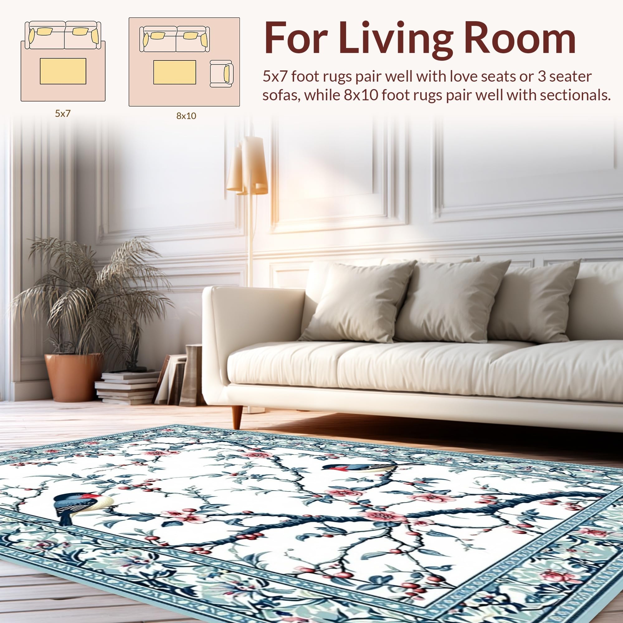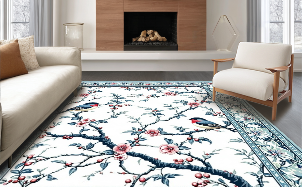 Ultra Soft Area Rug, Non Slip, Stain Resistant, Washable Area Rugs for Living Room, Bedroom, Fresh Airy Botanical Display(White) Overview: