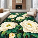 Flatwoven High Traffic Area Rug, Fresh Blossom Inspired Motif, Non Slip, Stain Resistant, Washable Area Rugs for Living Room, Bedroom (White) Overview: