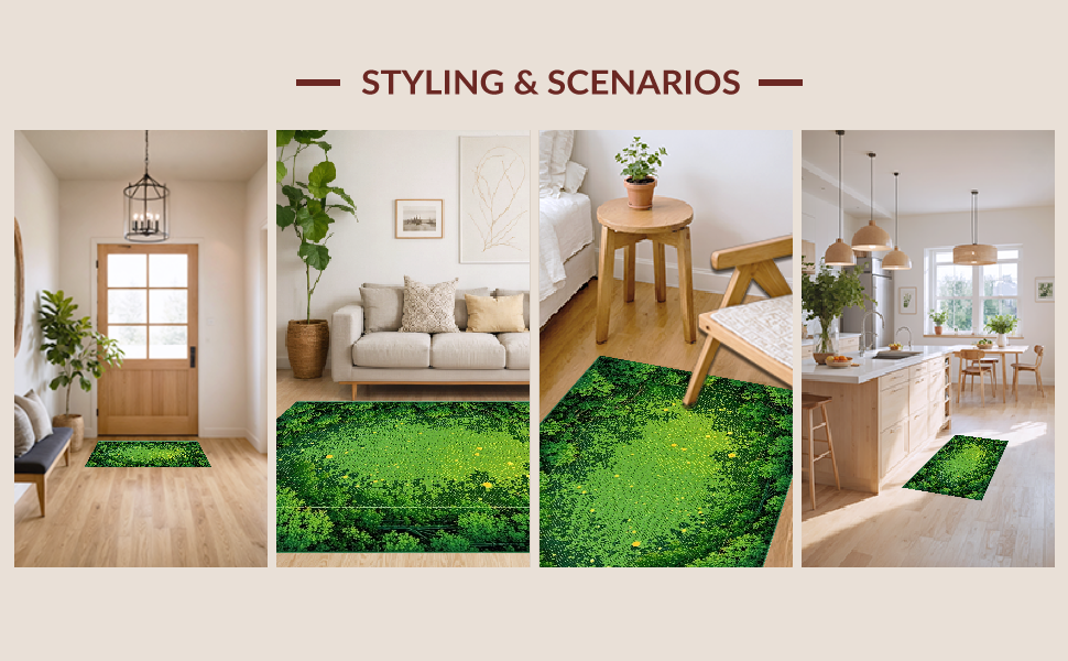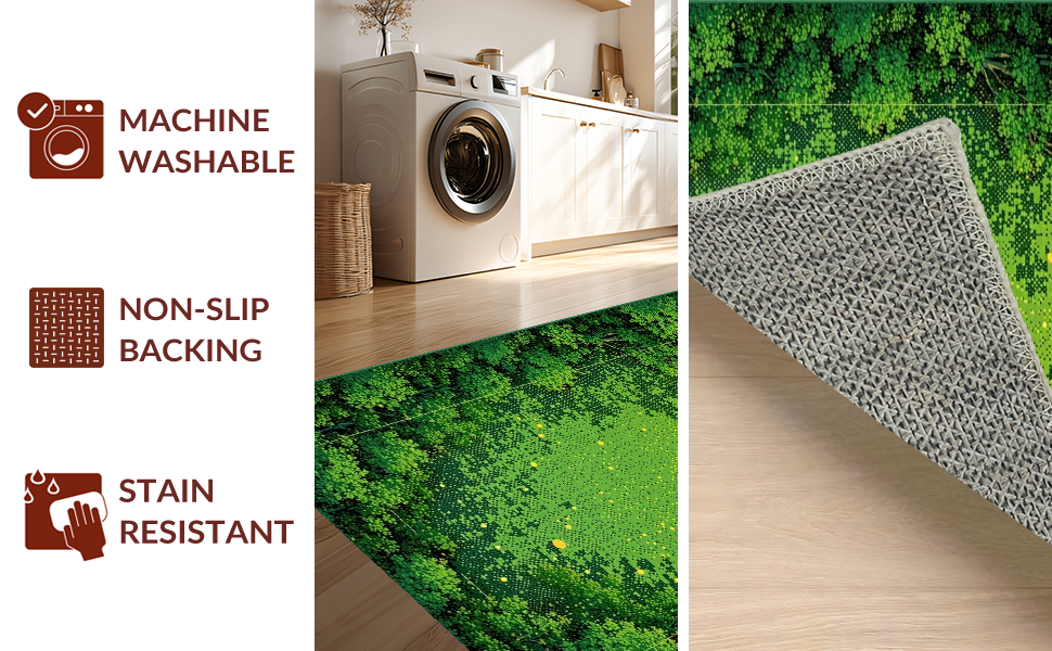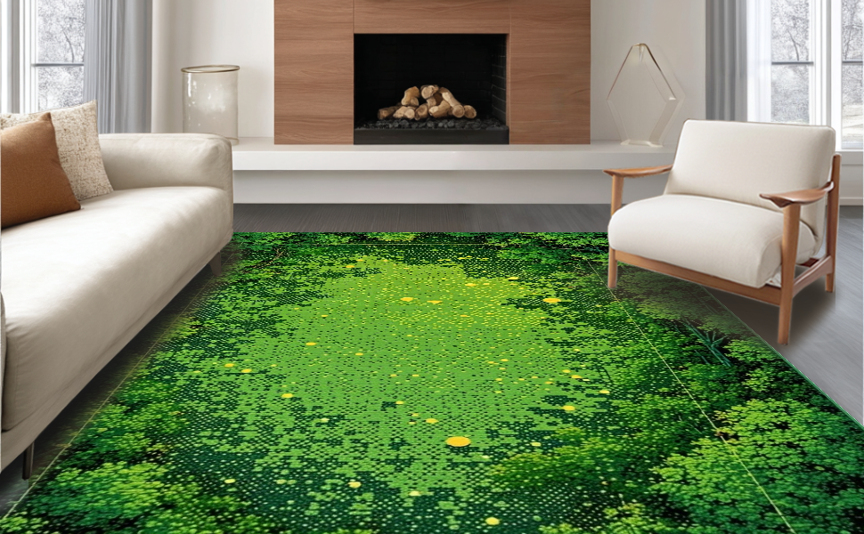 Ultra Soft Area Rug, Non Slip, Stain Resistant, Washable Area Rugs for Living Room, Bedroom, Fresh Garden-Inspired Color Palette(Green) Overview: