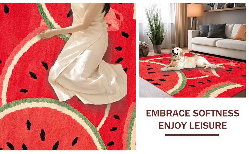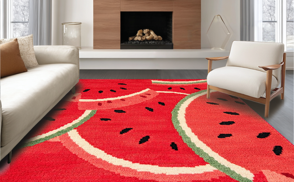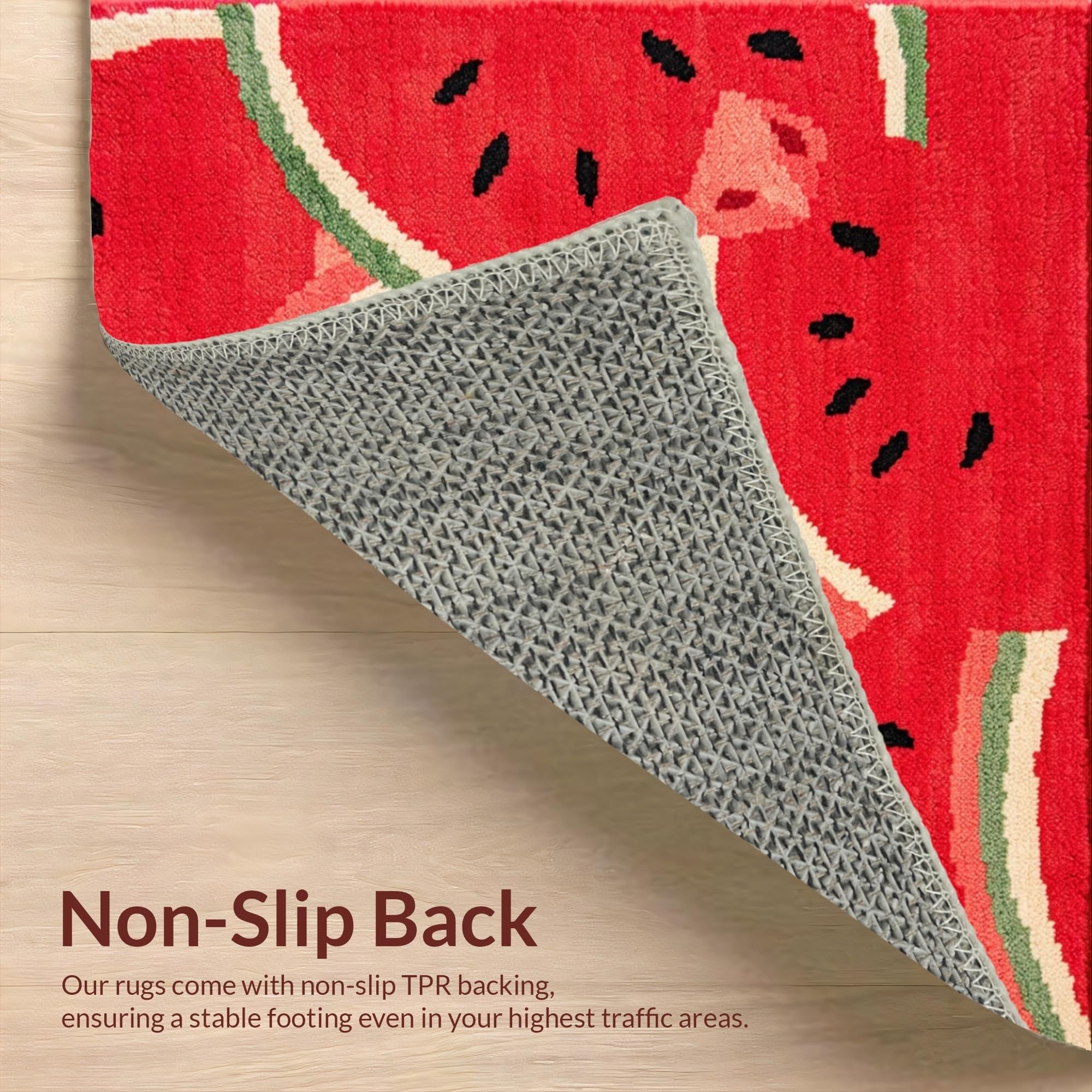 Ultra Soft Area Rug, Non Slip, Stain Resistant, Washable Area Rugs for Living Room, Bedroom, Fresh Greenery Accented Tapestry(Red) Overview:
