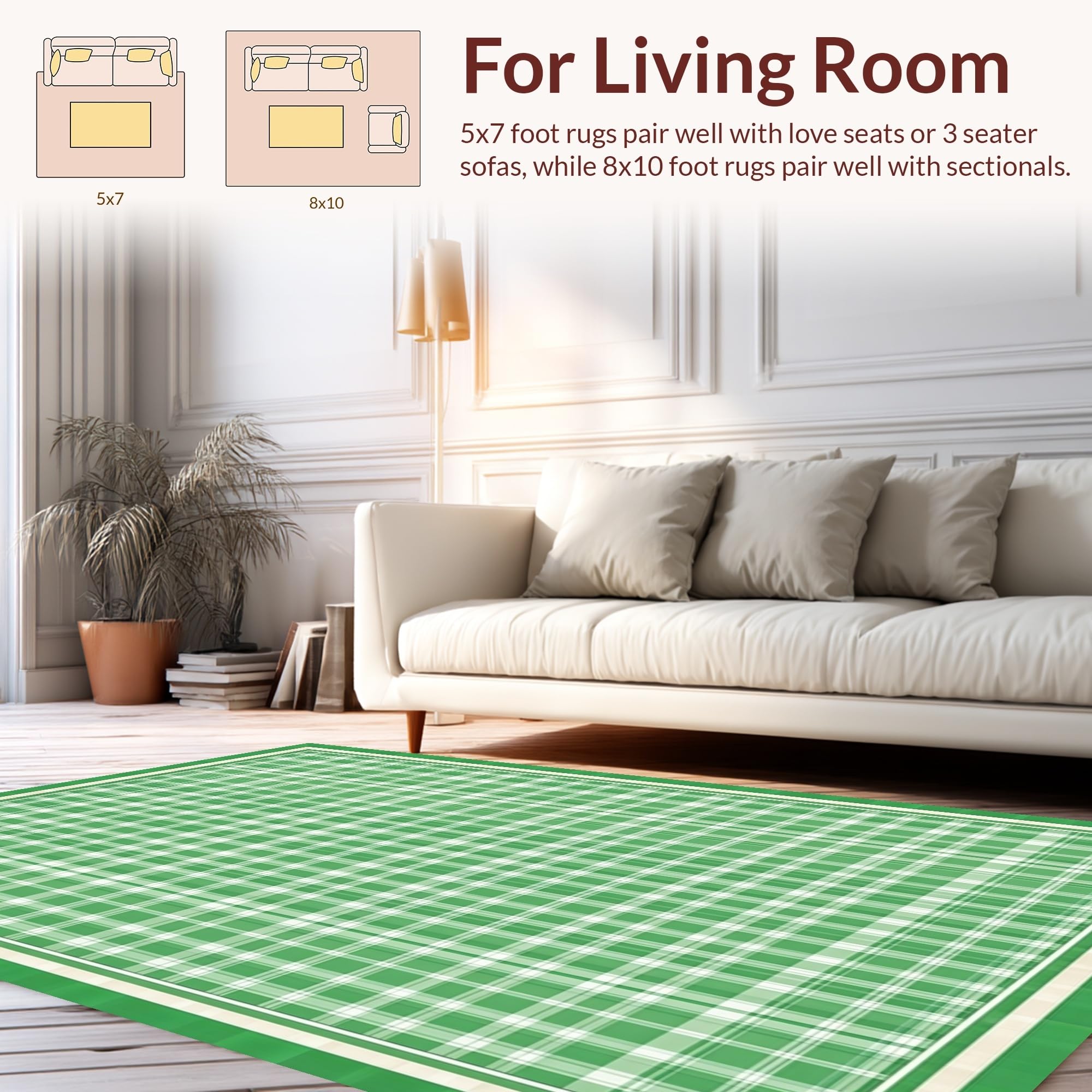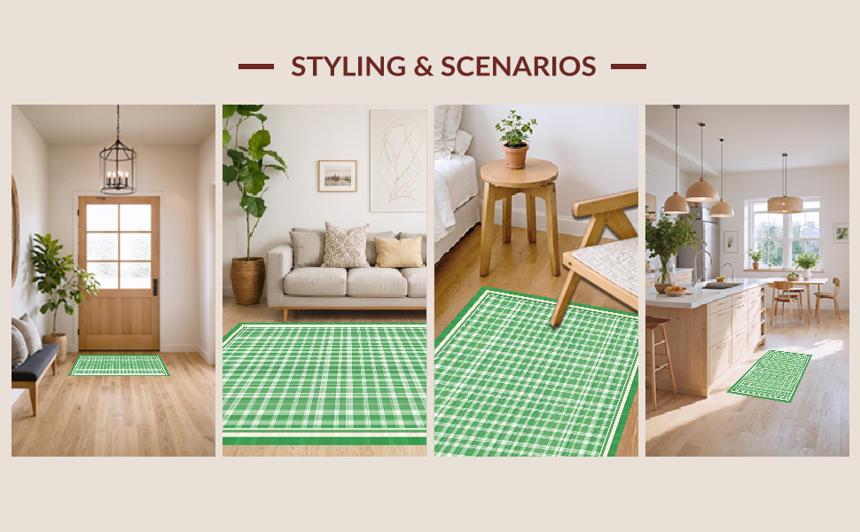 Ultra Soft Area Rug, Non Slip, Stain Resistant, Washable Area Rugs for Living Room, Bedroom, Fresh Modern Trellis Motif(Green) Overview: