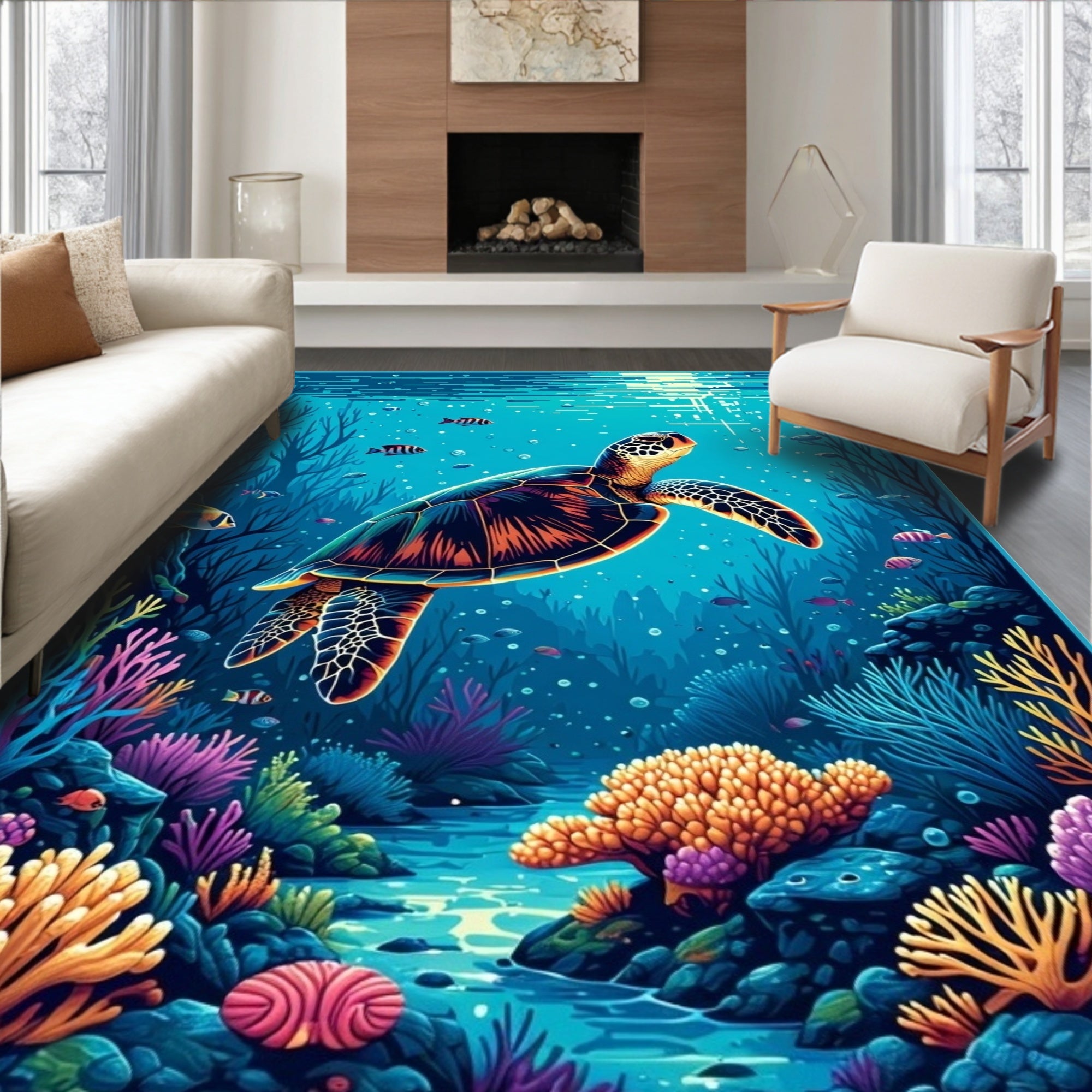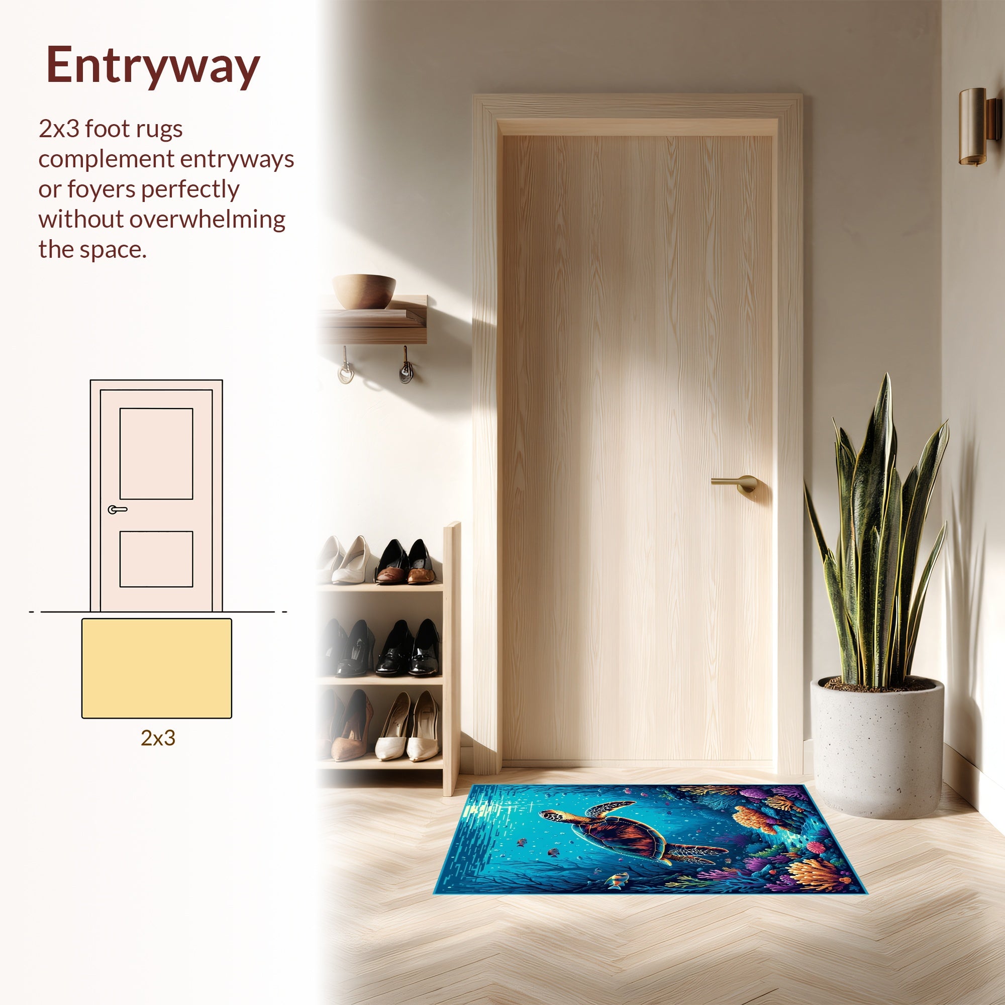 Flatwoven High Traffic Area Rug, Fresh Ocean Breeze Palette, Non Slip, Stain Resistant, Washable Area Rugs for Living Room, Bedroom (Blue) Overview: