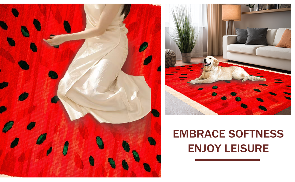 Ultra Soft Area Rug, Non Slip, Stain Resistant, Washable Area Rugs for Living Room, Bedroom, Fresh Summery Fruit Pattern(Red) Overview: