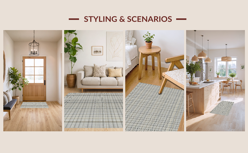 Ultra Soft Area Rug, Non Slip, Stain Resistant, Washable Area Rugs for Living Room, Bedroom, Fresh Urban Abstract Checkered Look(Beige) Overview: