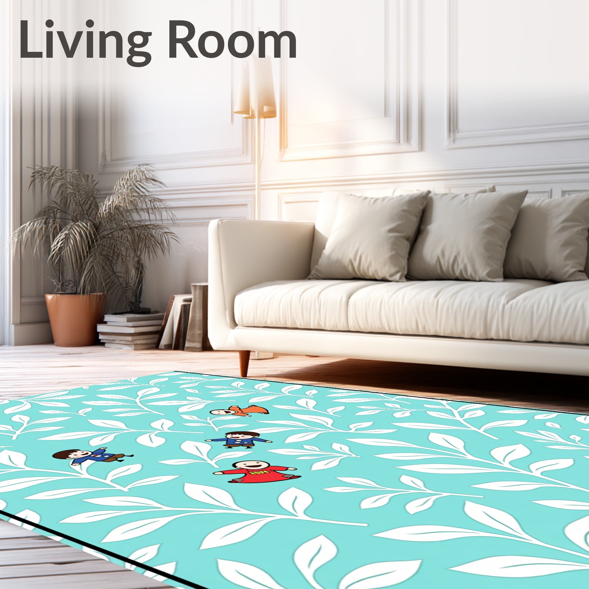 Ultra Soft Area Rug, Non Slip, Stain Resistant, Washable Area Rugs for Living Room, Bedroom, Friendly Forest Gathering with Animated Figures and Leafy Swirls(Blue) Overview: