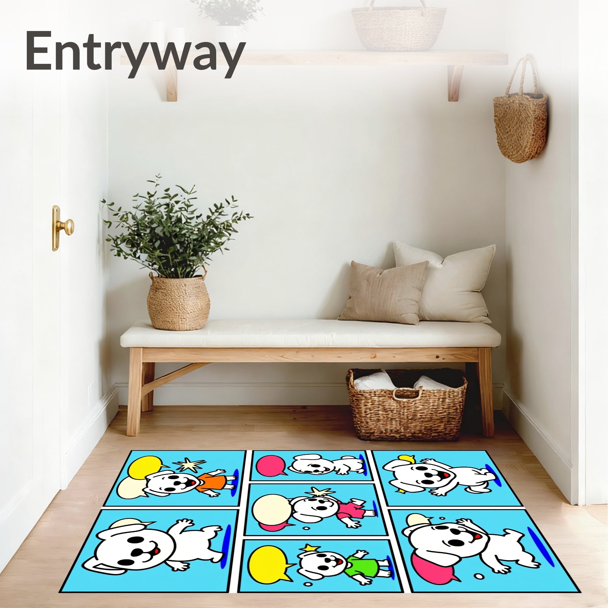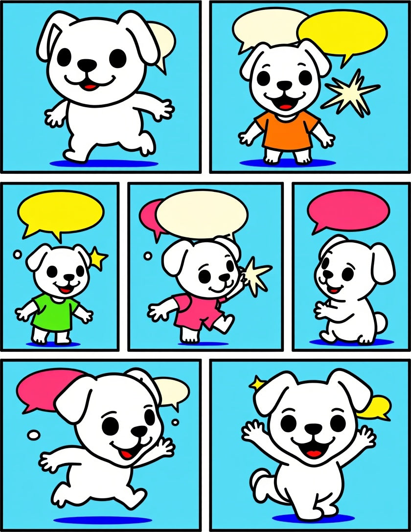 Friendly Puppy Adventure Scene Floor with Comic Strip Style(Blue)