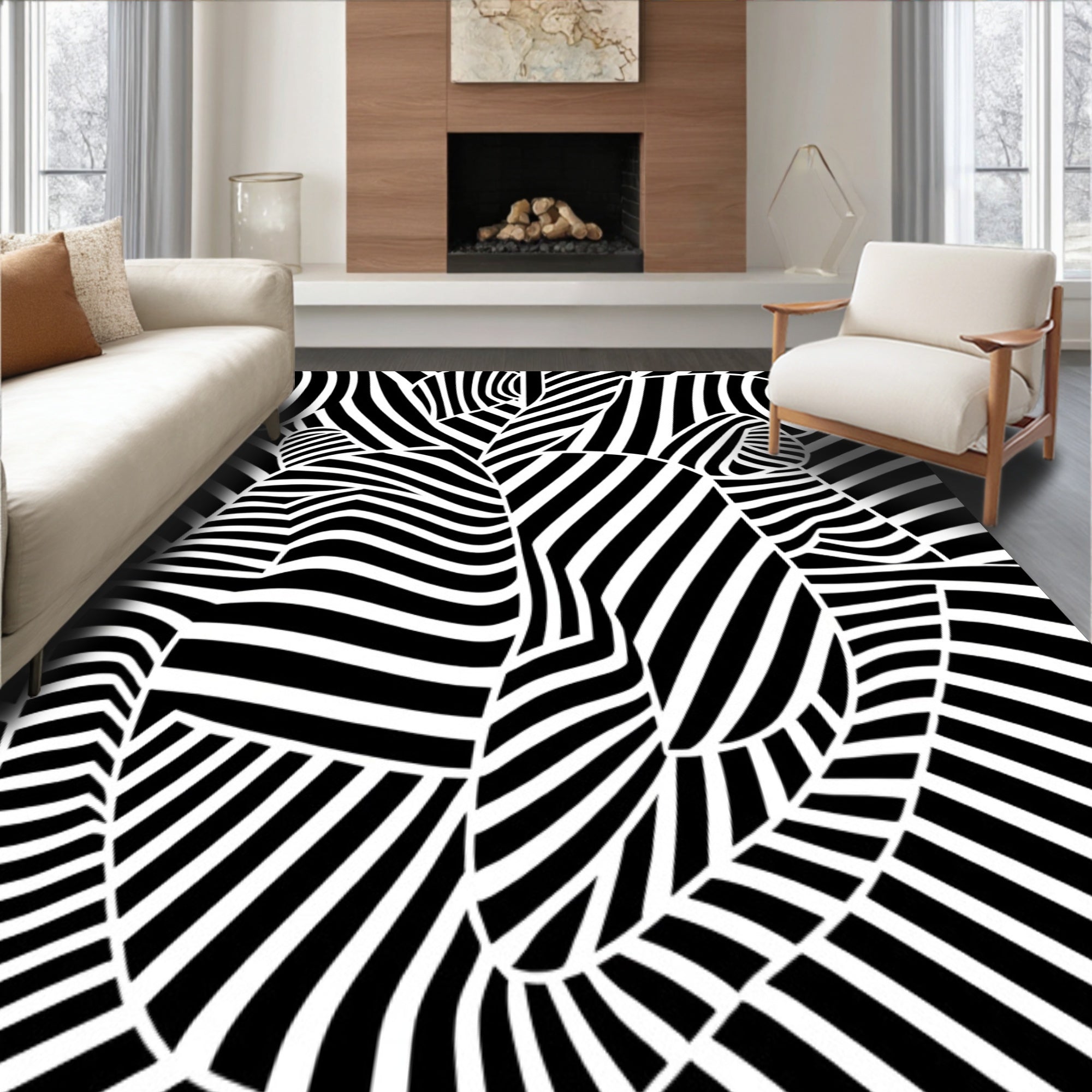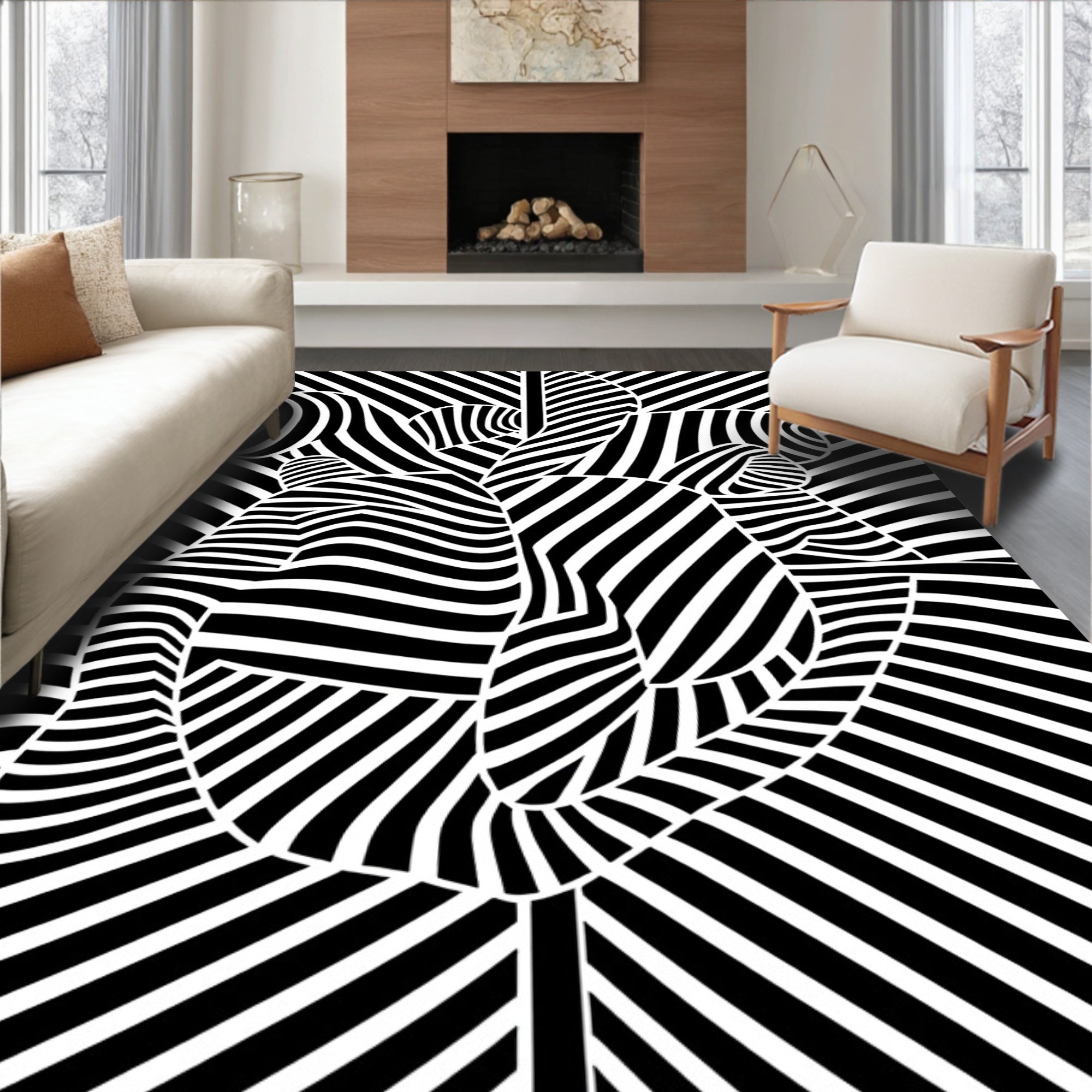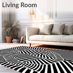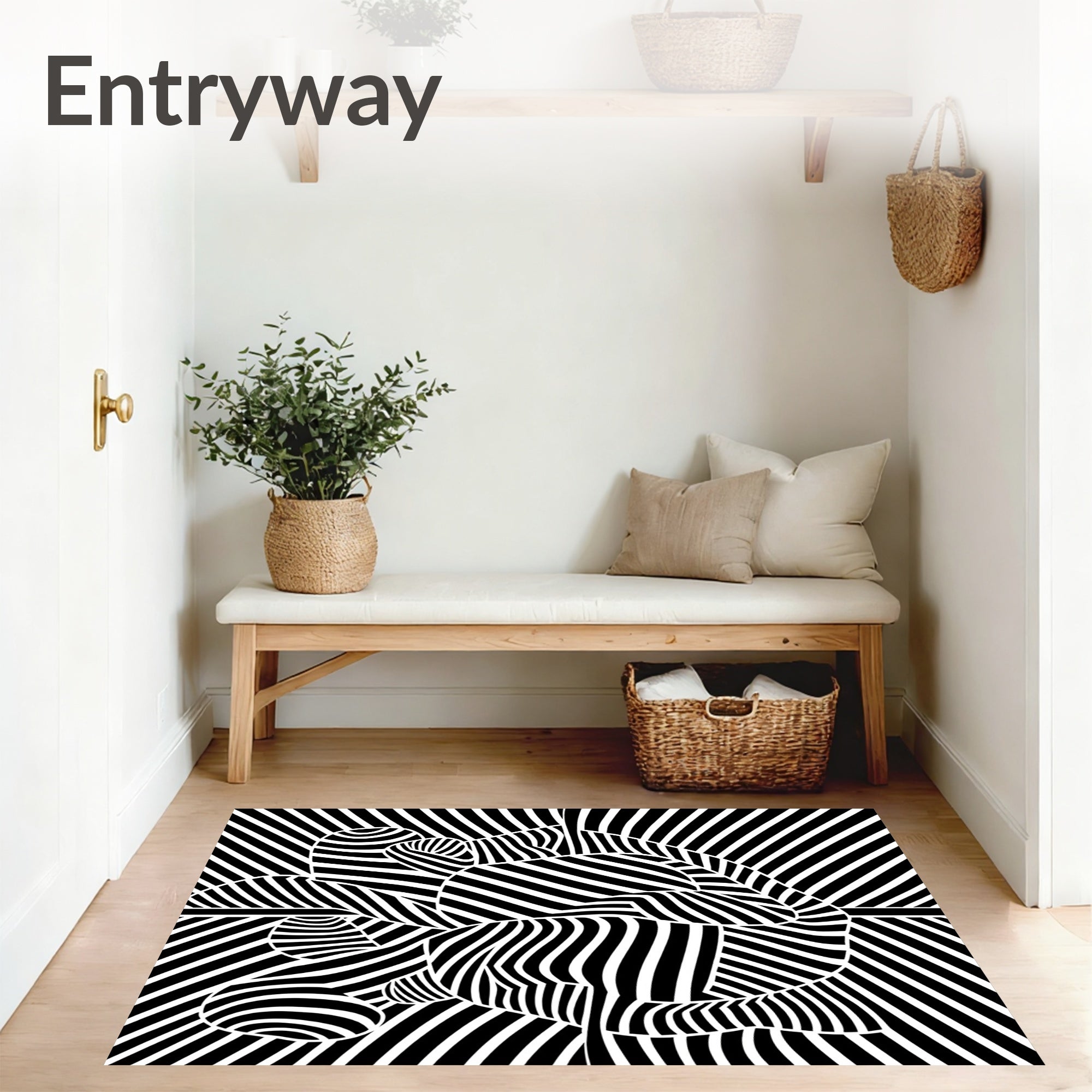 Ultra Soft Area Rug, Non Slip, Stain Resistant, Washable Area Rugs for Living Room, Bedroom, Frightful Phantom Striped Entry Halloween Themed(Black) Overview: