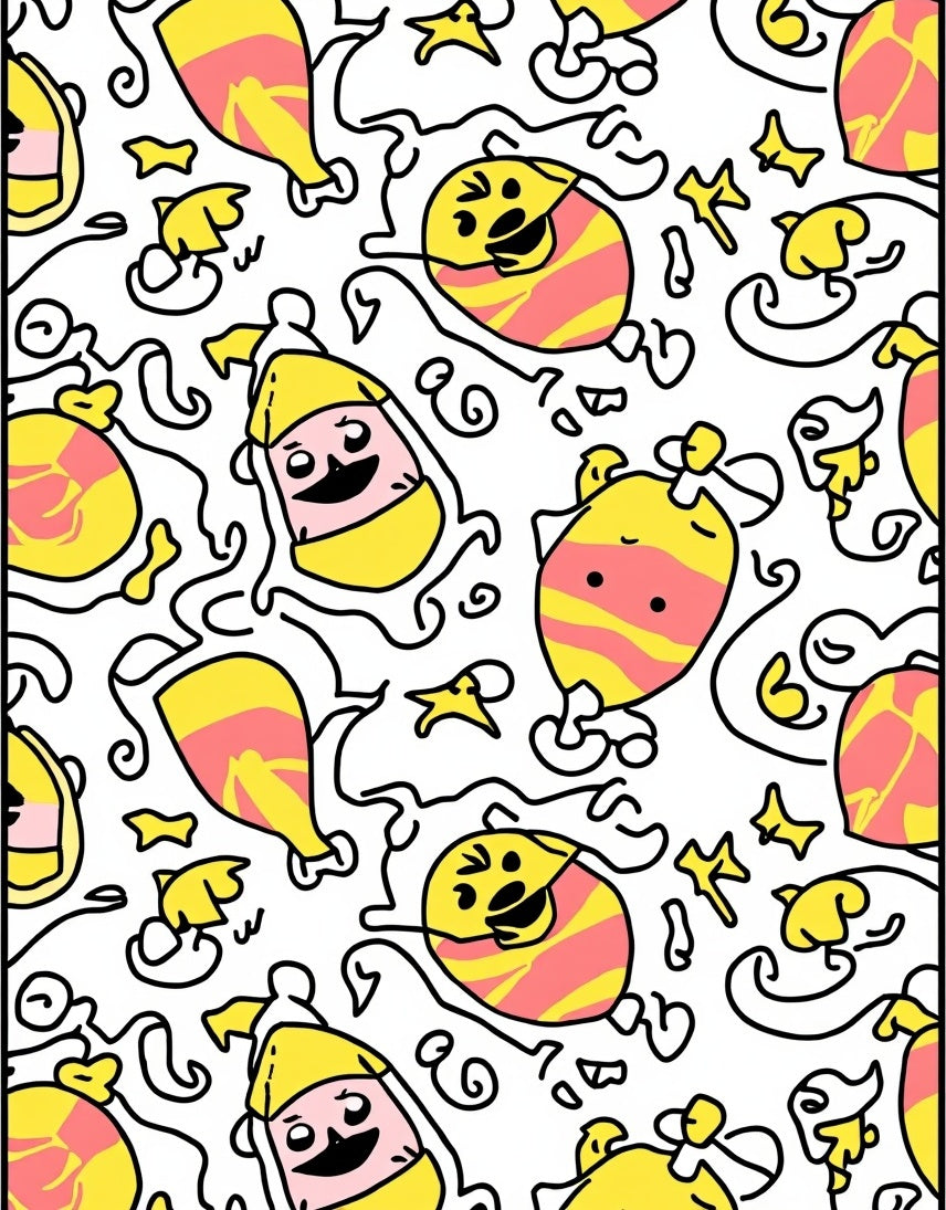 Frosted Corn Swirl with Playful Bones and Trickster Faces(Yellow)