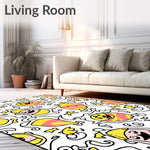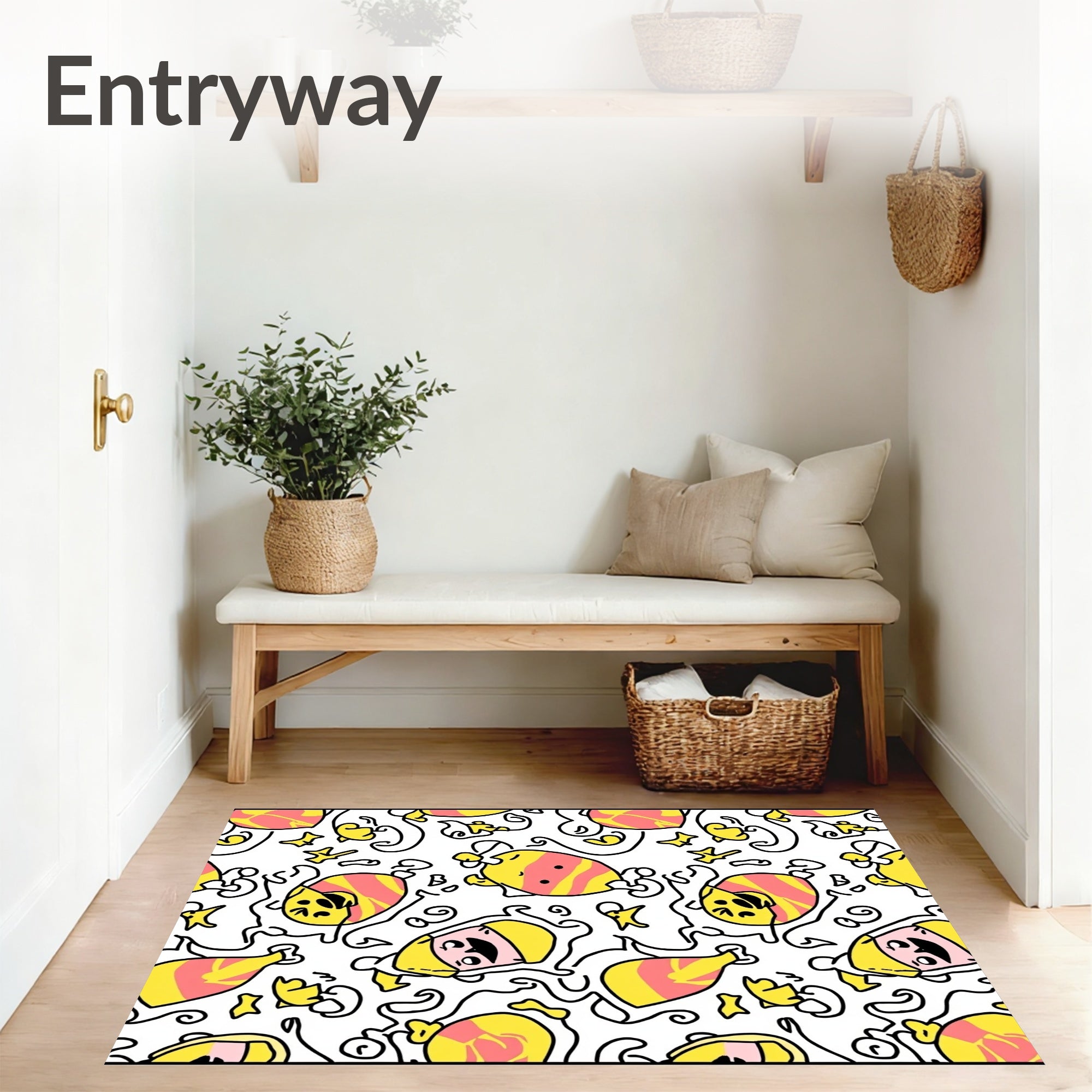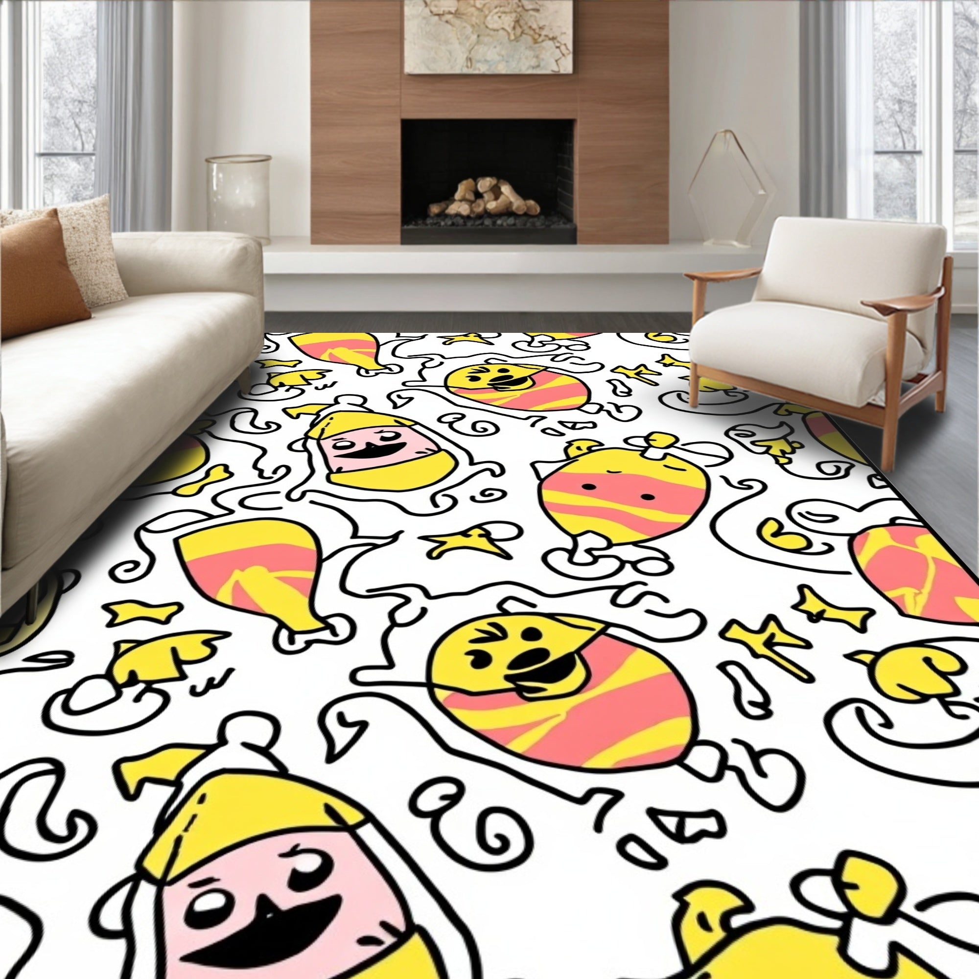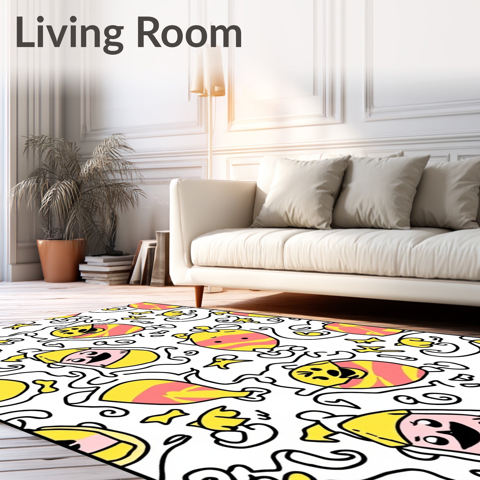 Ultra Soft Area Rug, Non Slip, Stain Resistant, Washable Area Rugs for Living Room, Bedroom, Frosted Corn Swirl with Playful Bones and Trickster Faces(Yellow) Overview: