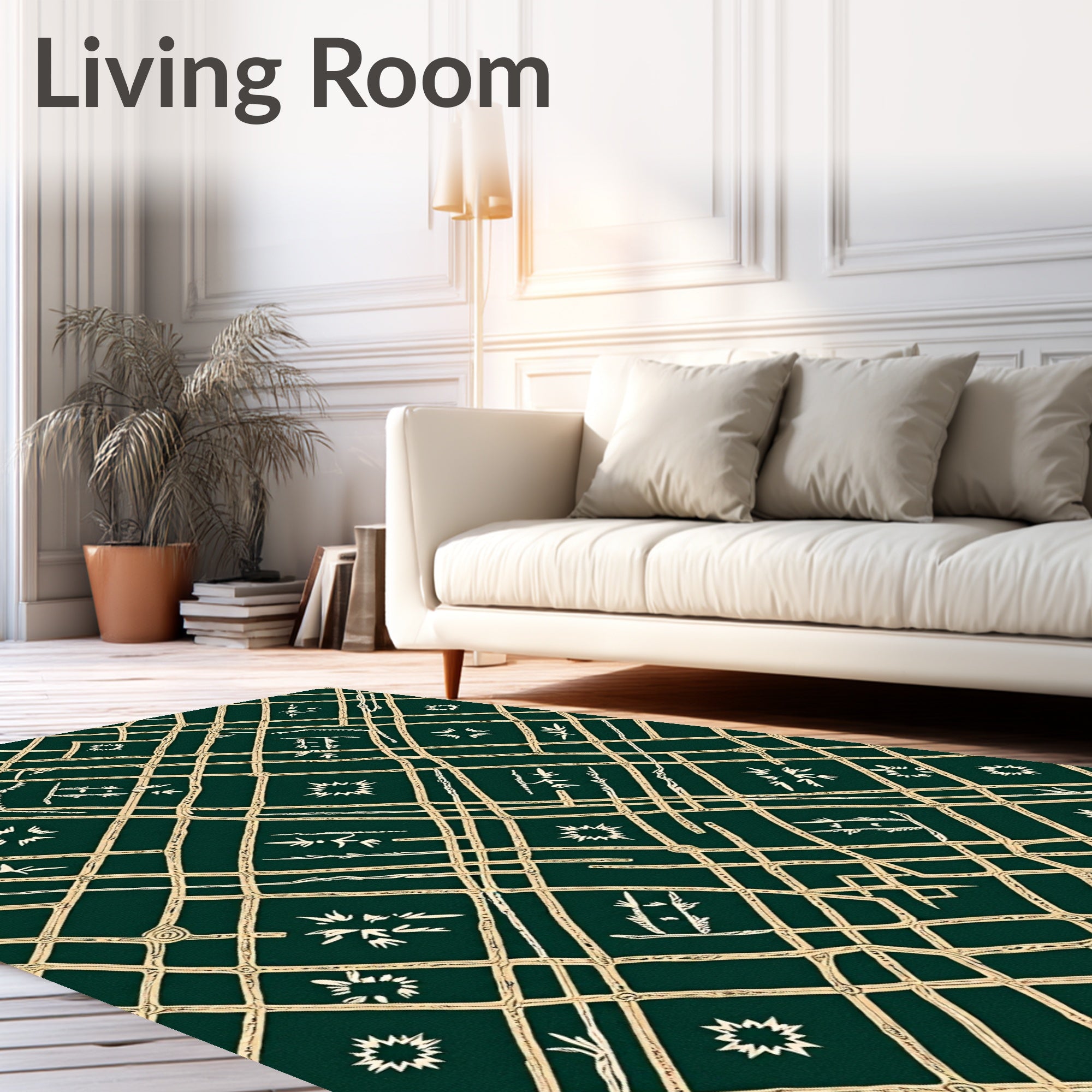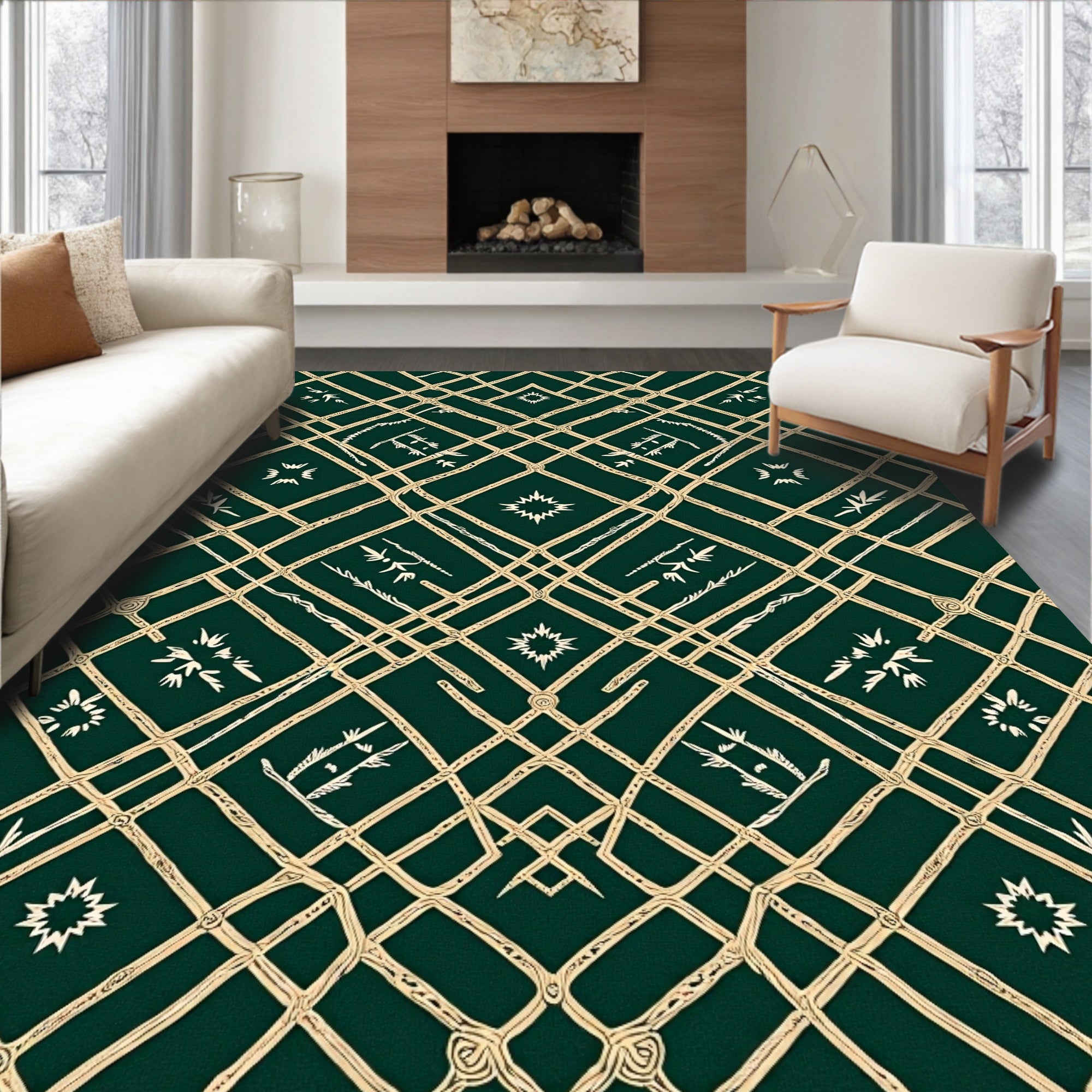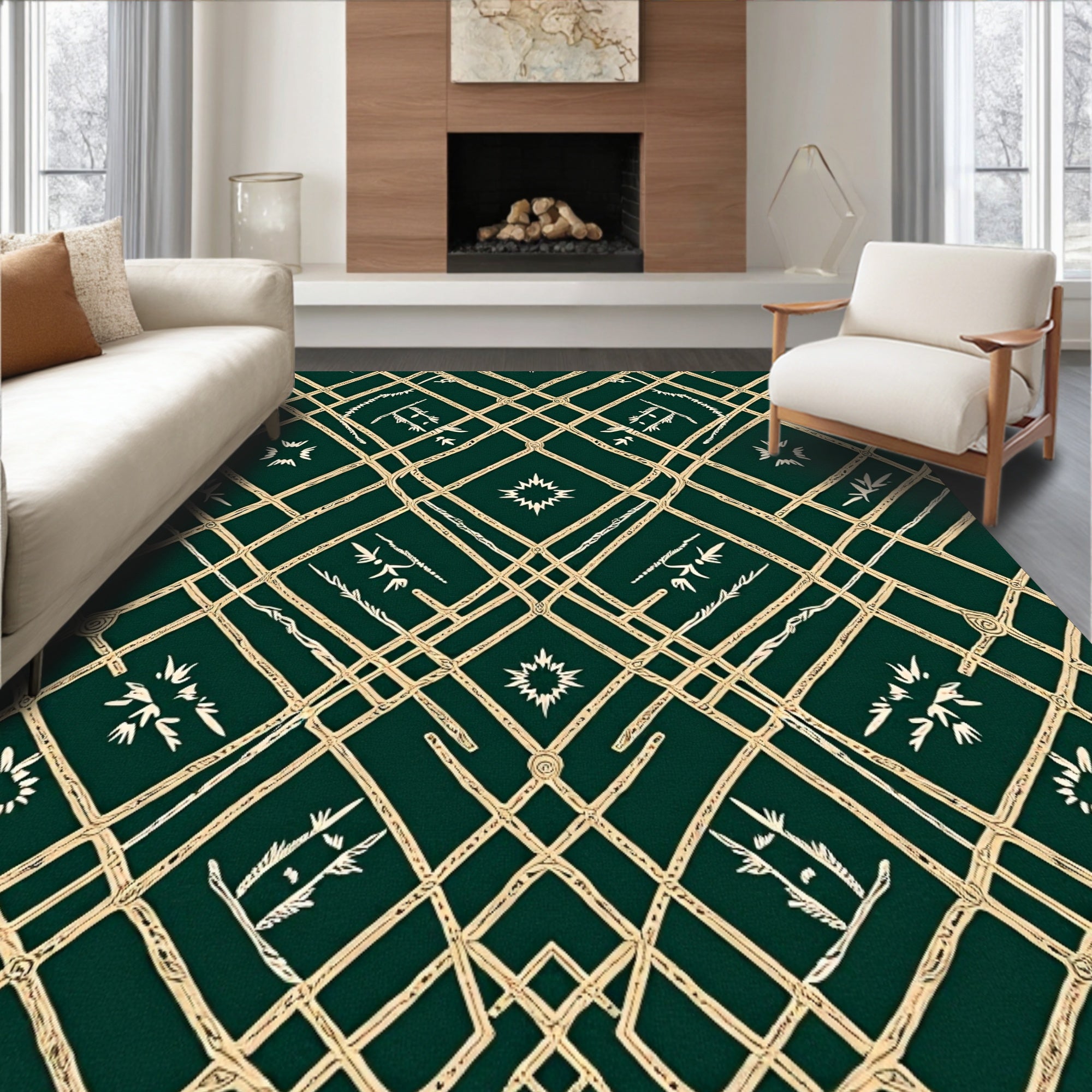 Ultra Soft Area Rug, Non Slip, Stain Resistant, Washable Area Rugs for Living Room, Bedroom, Frosted Pine Needle Interlocking Plaid with Stylized Crystal Flakes(Green) Overview:
