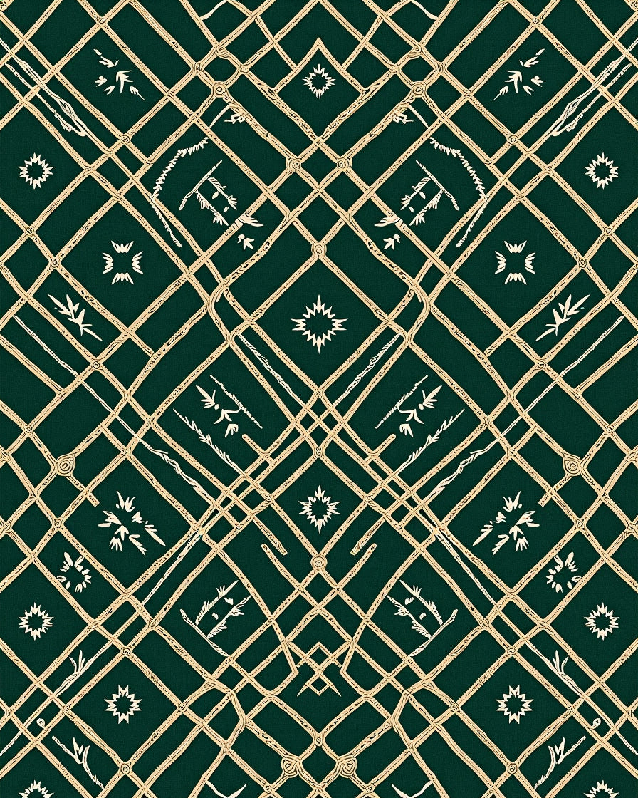 Frosted Pine Needle Interlocking Plaid with Stylized Crystal Flakes(Green)