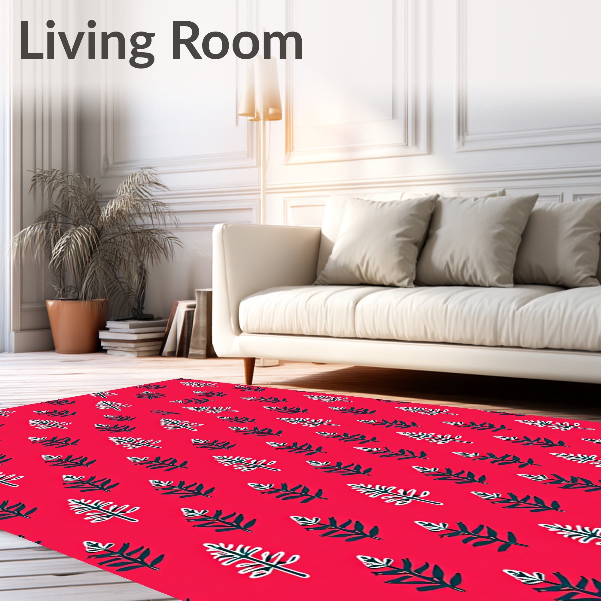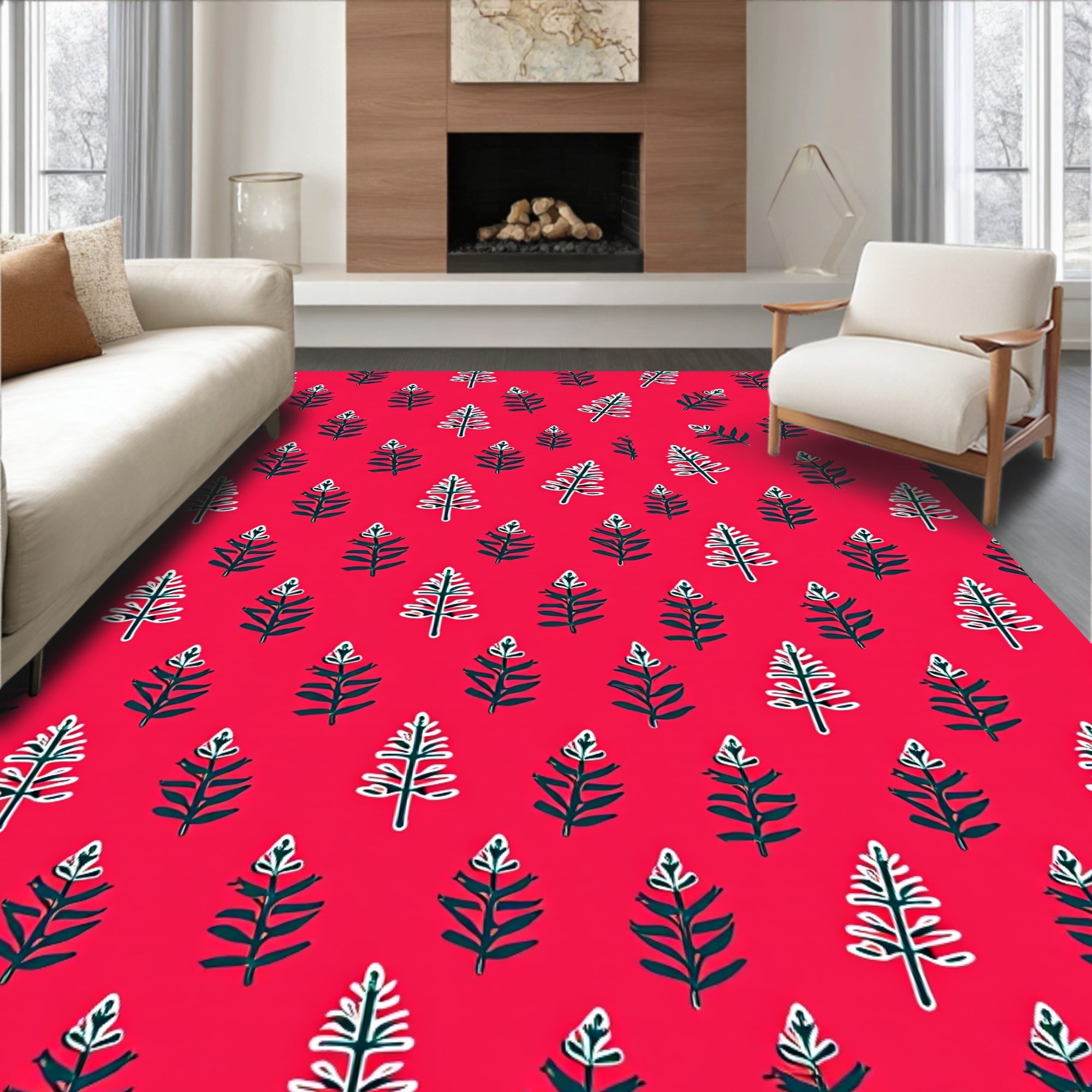 Ultra Soft Area Rug, Non Slip, Stain Resistant, Washable Area Rugs for Living Room, Bedroom, Frosty Evergreen Branch Delicate Embellishment(Red) Overview: