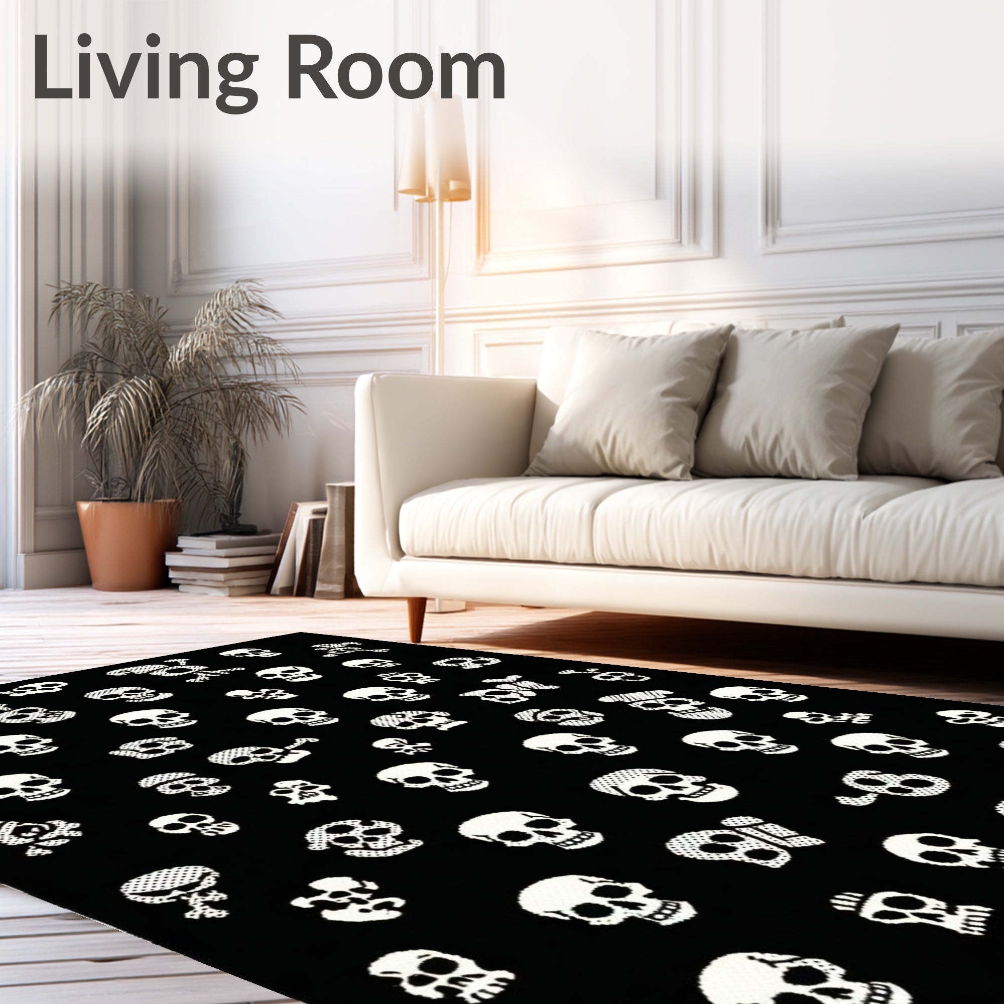 Ultra Soft Area Rug, Non Slip, Stain Resistant, Washable Area Rugs for Living Room, Bedroom, Fun Earthy Toned Skull Art(Black) Overview: