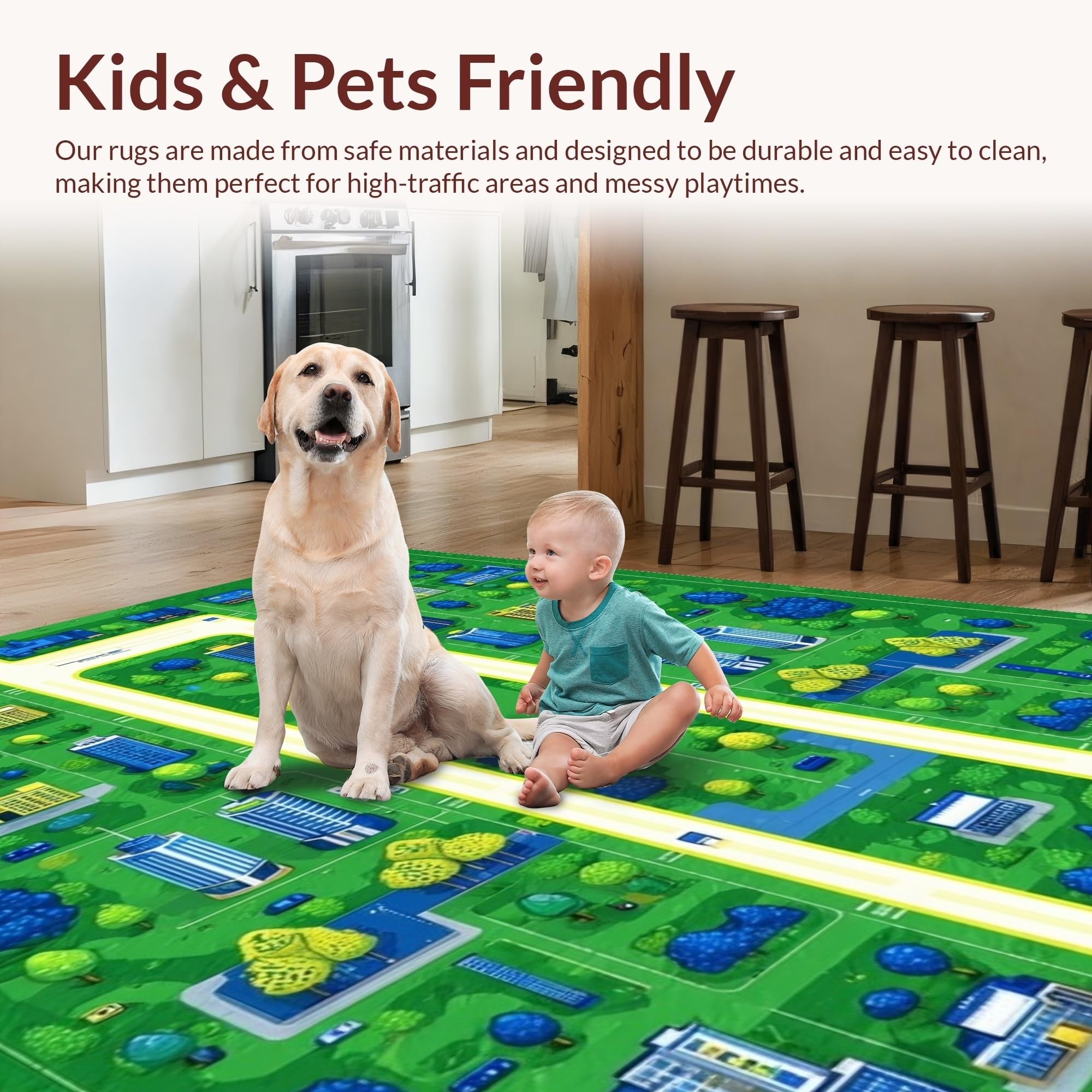 Ultra Soft Area Rug, Non Slip, Stain Resistant, Washable Area Rugs for Living Room, Bedroom, Fun Multicolored Educational Activity Mat(Green) Overview: