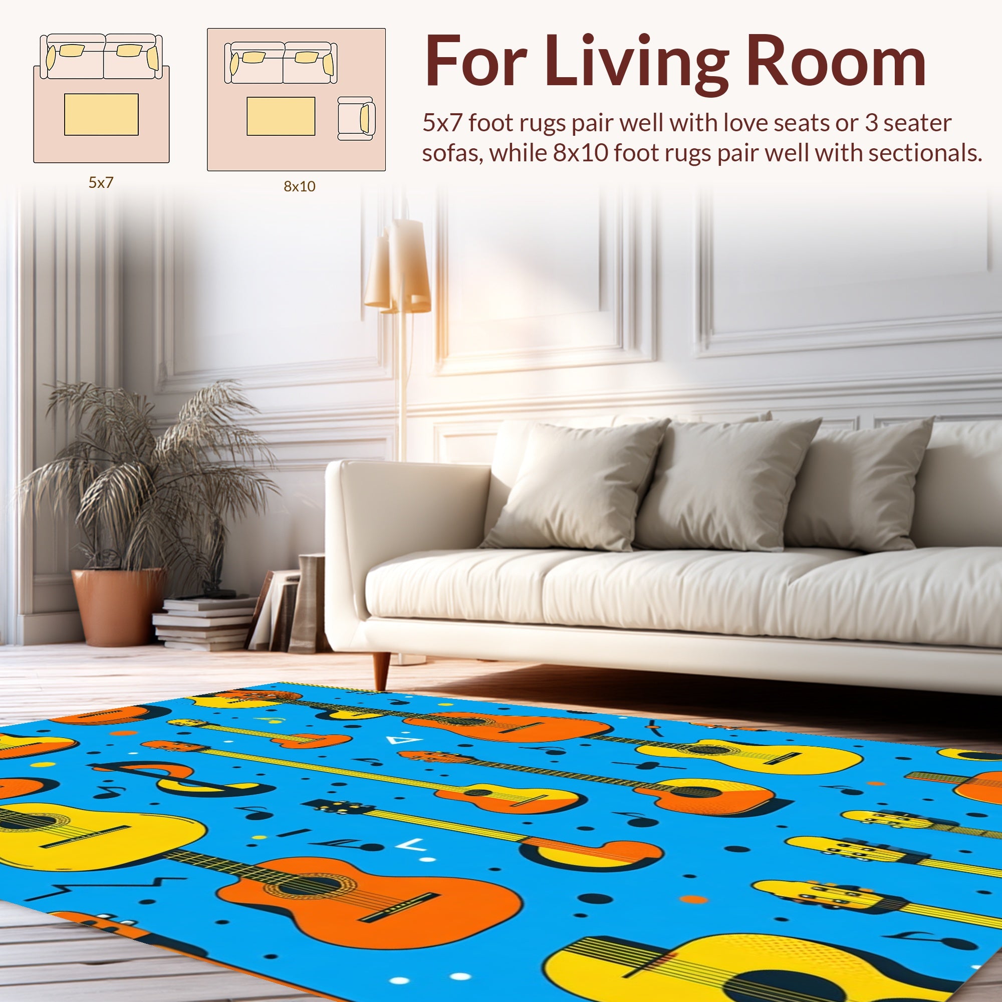 Flatwoven High Traffic Area Rug, Fun Musical Themed Design, Non Slip, Stain Resistant, Washable Area Rugs for Living Room, Bedroom (Blue) Overview: