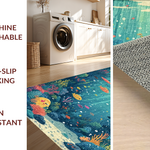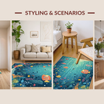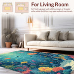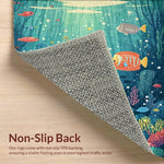 Ultra Soft Area Rug, Non Slip, Stain Resistant, Washable Area Rugs for Living Room, Bedroom, Fun Ocean World Rug for Kids with Marine Life and Learning Shapes(Blue) Overview: