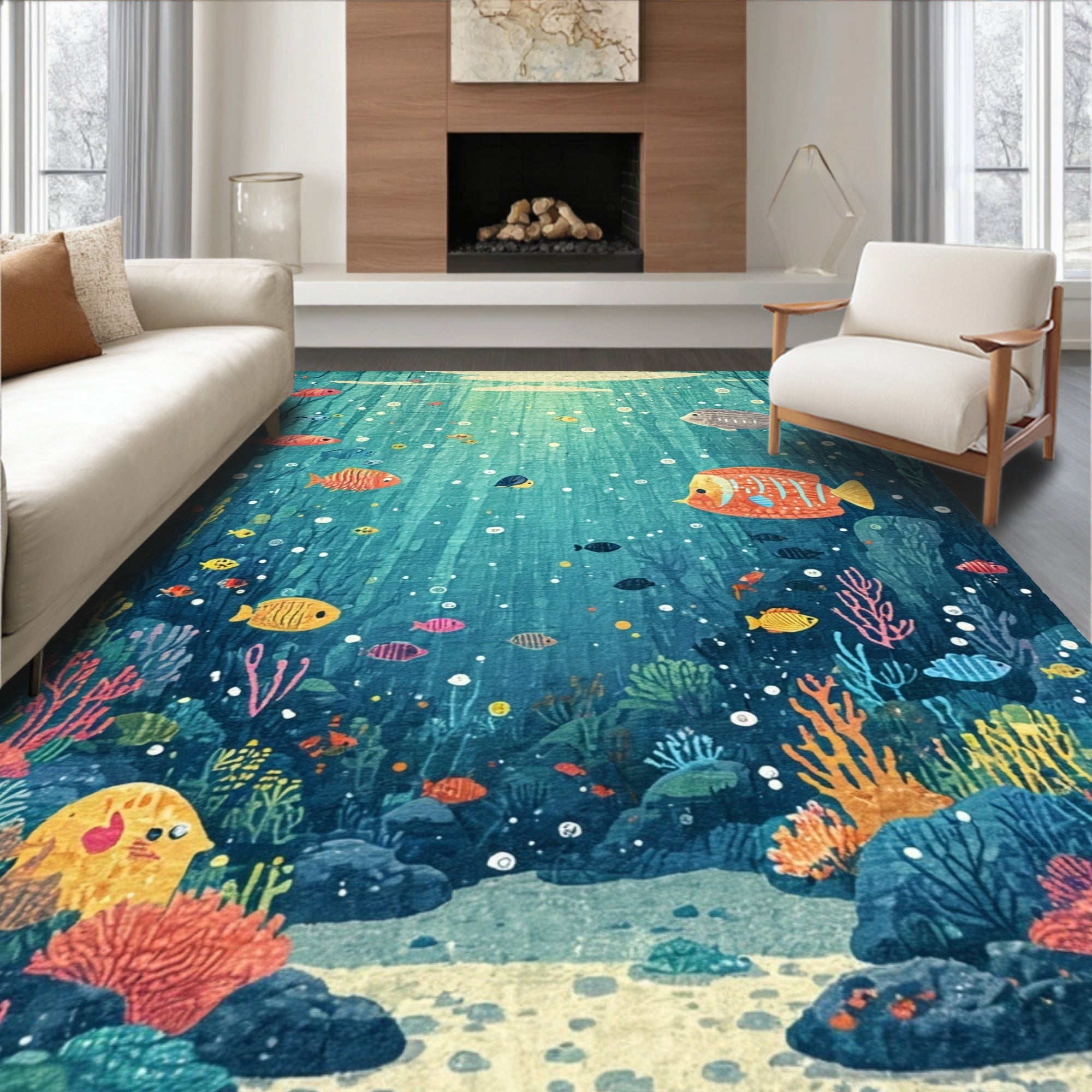 Flatwoven High Traffic Area Rug, Fun Ocean World for Kids with Marine Life and Learning Shapes, Non Slip, Stain Resistant, Washable Area Rugs for Living Room, Bedroom (Blue) Overview: