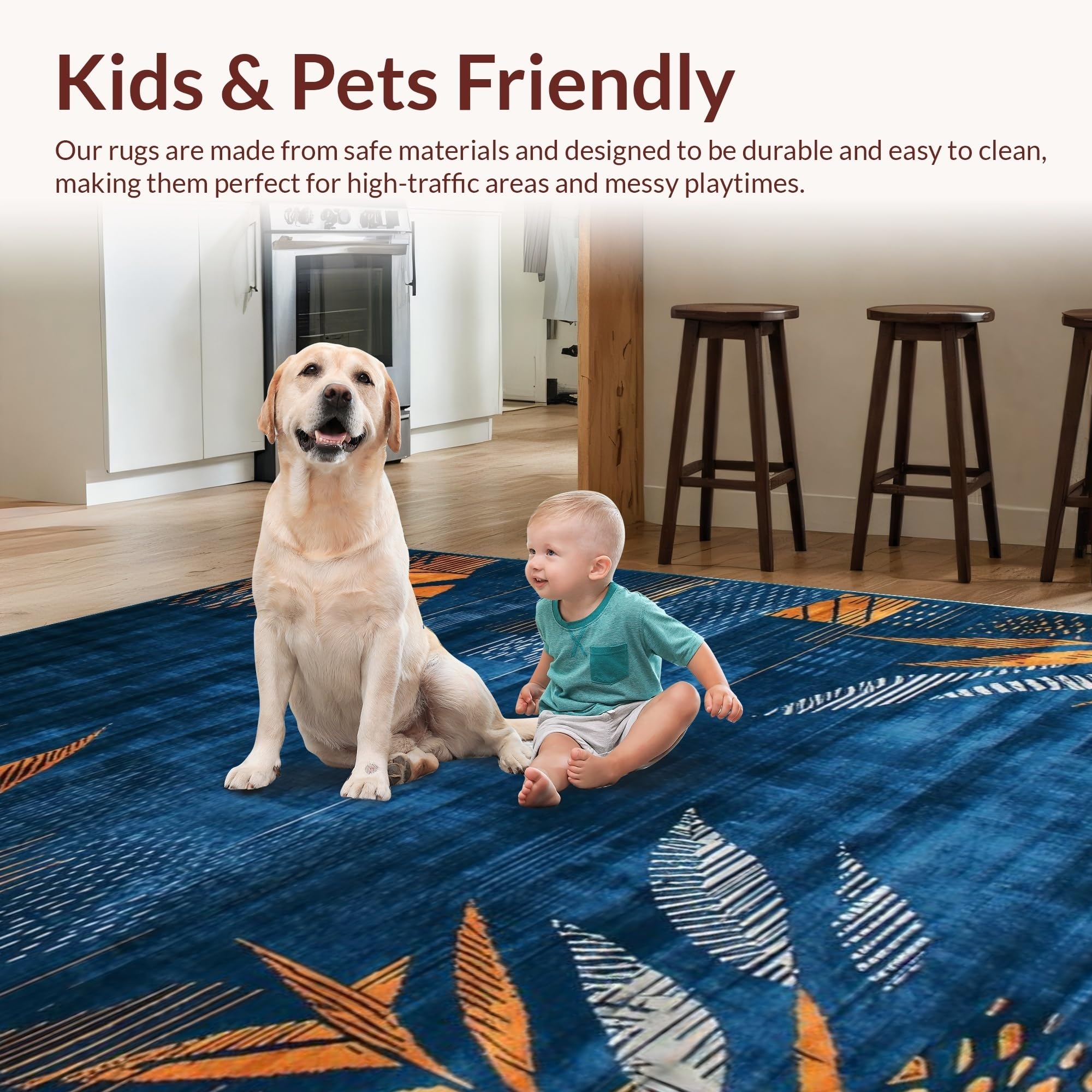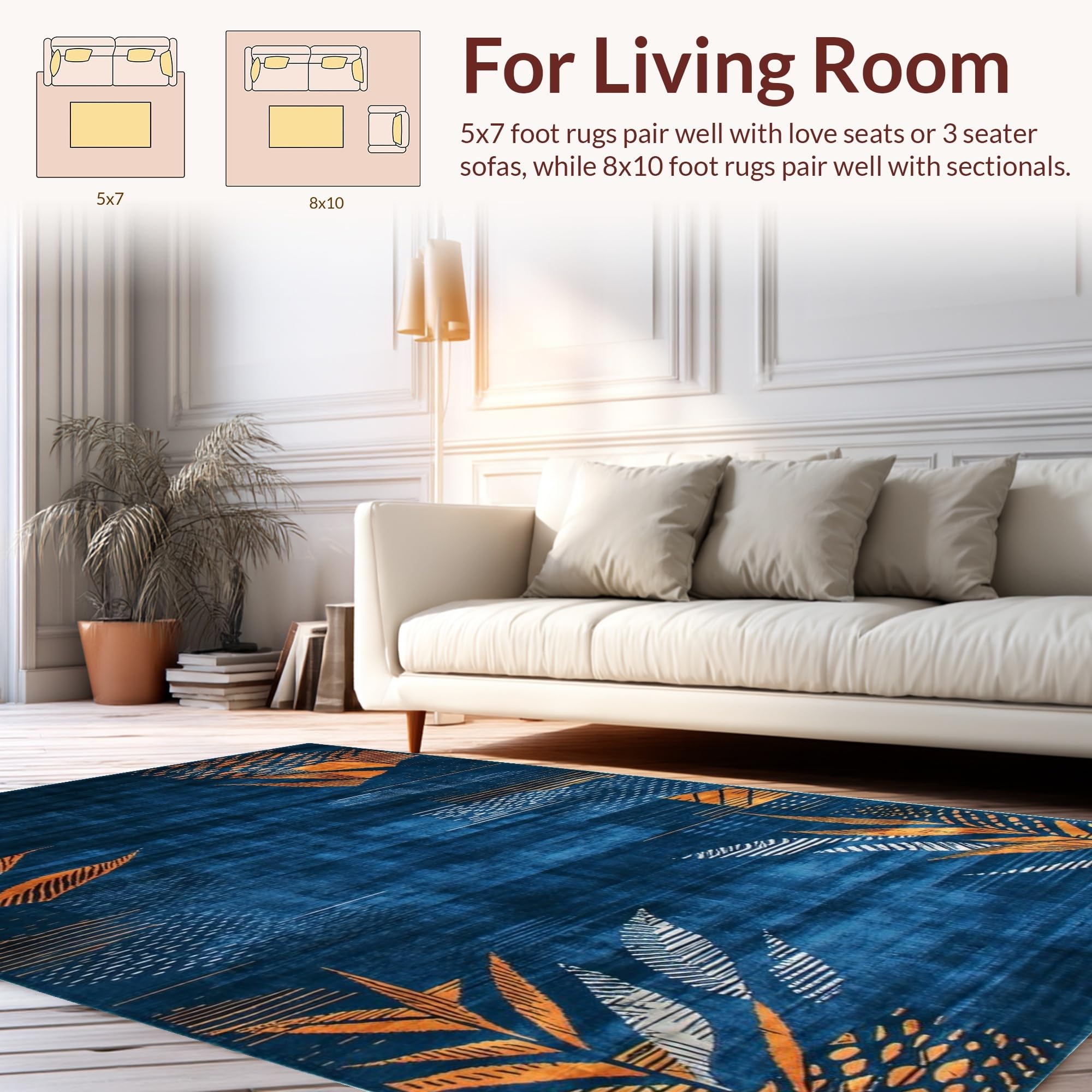 Ultra Soft Area Rug, Non Slip, Stain Resistant, Washable Area Rugs for Living Room, Bedroom, Funky Abstract Tiger Aesthetic(Blue) Overview: