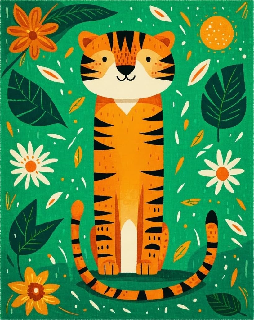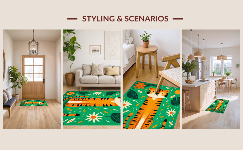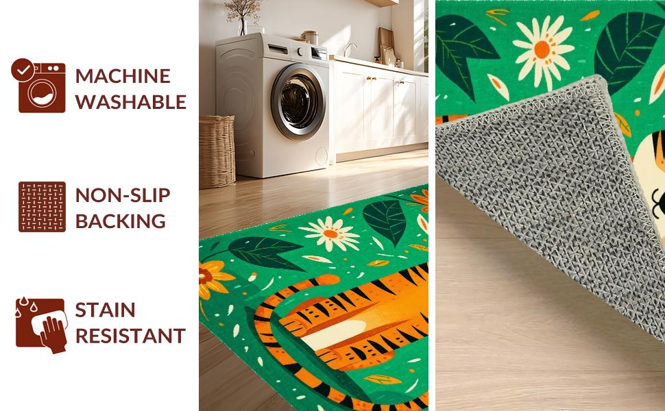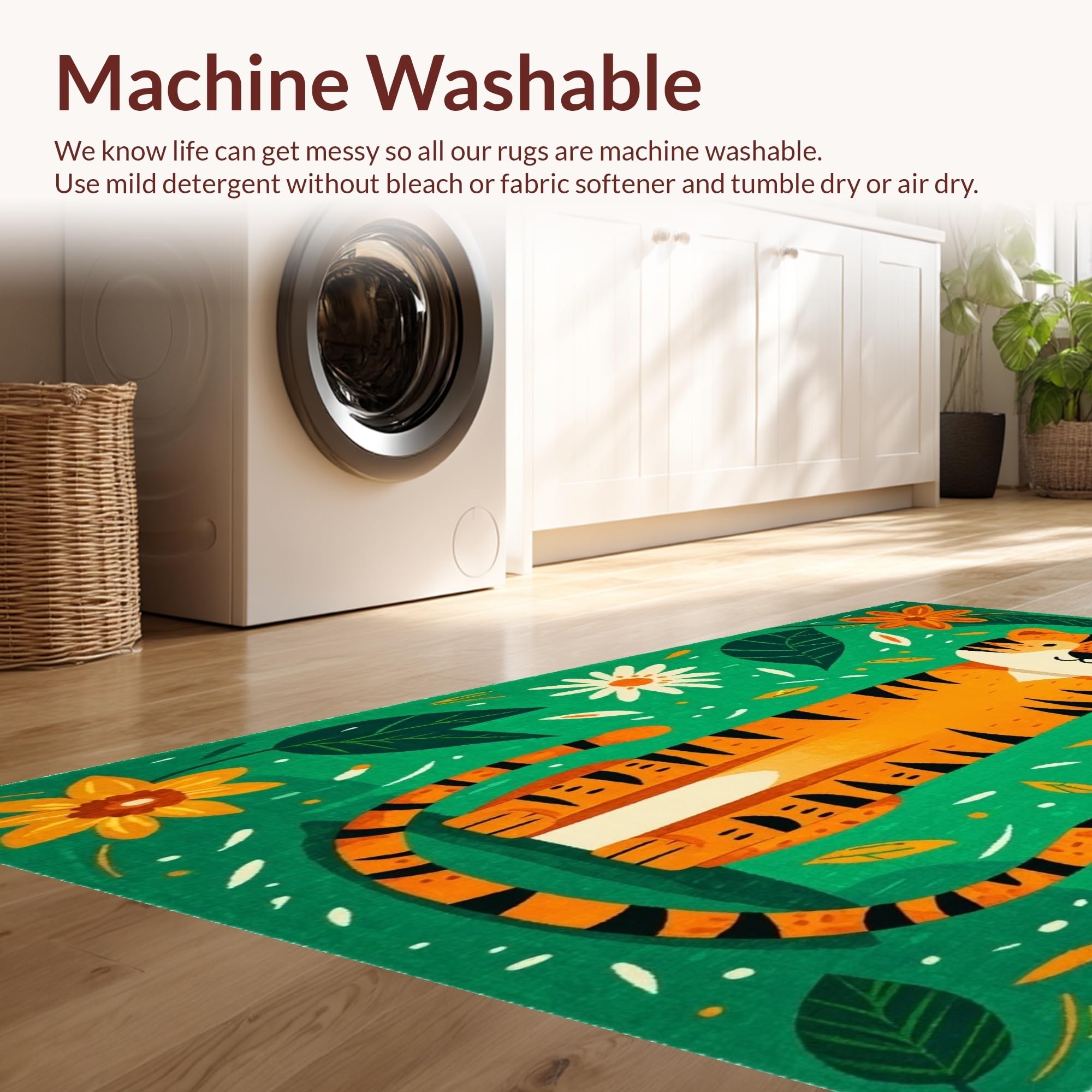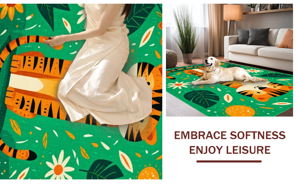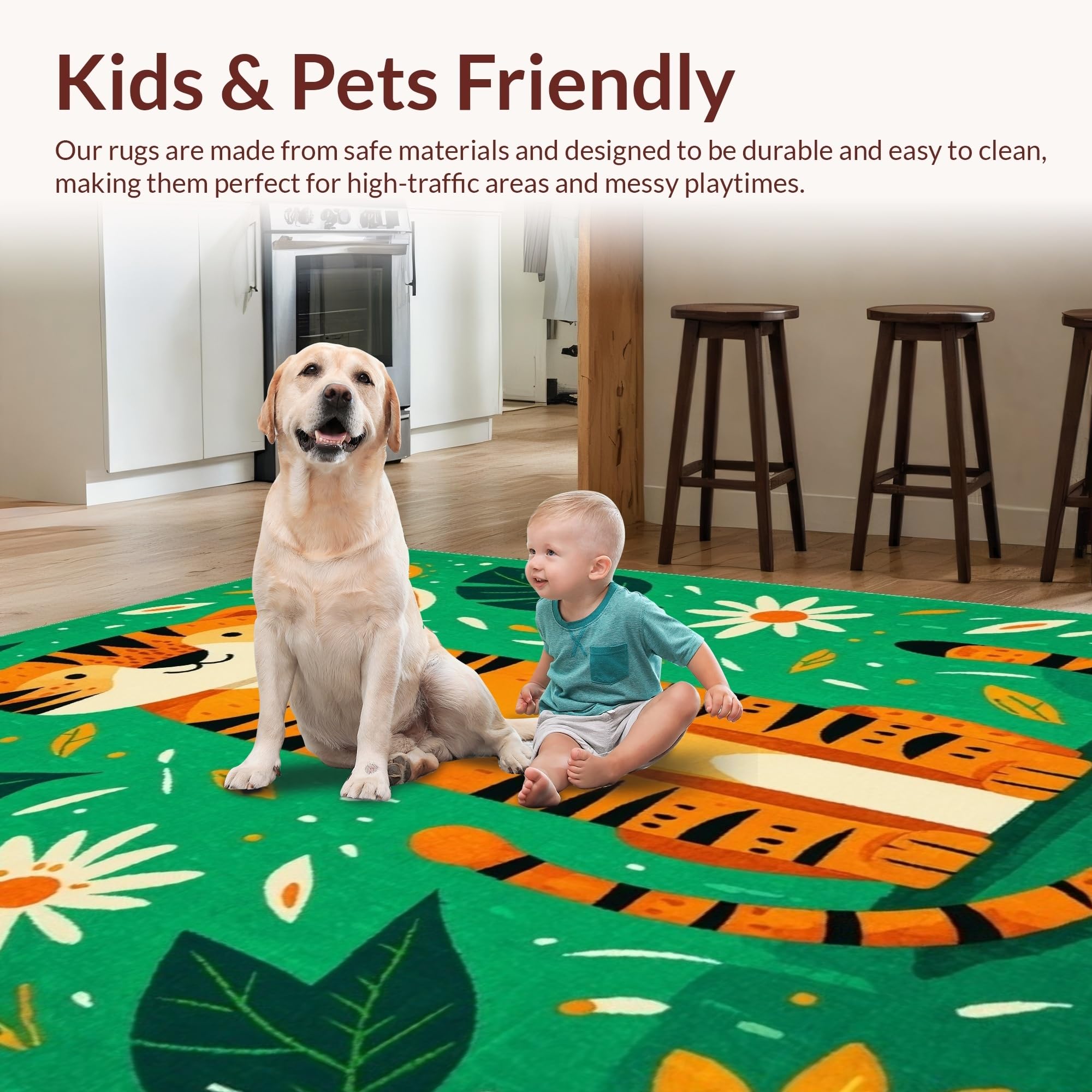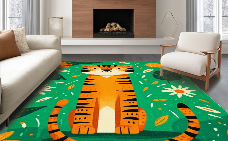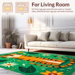 Ultra Soft Area Rug, Non Slip, Stain Resistant, Washable Area Rugs for Living Room, Bedroom, Funky Green Tiger Aesthetic(Green) Overview: