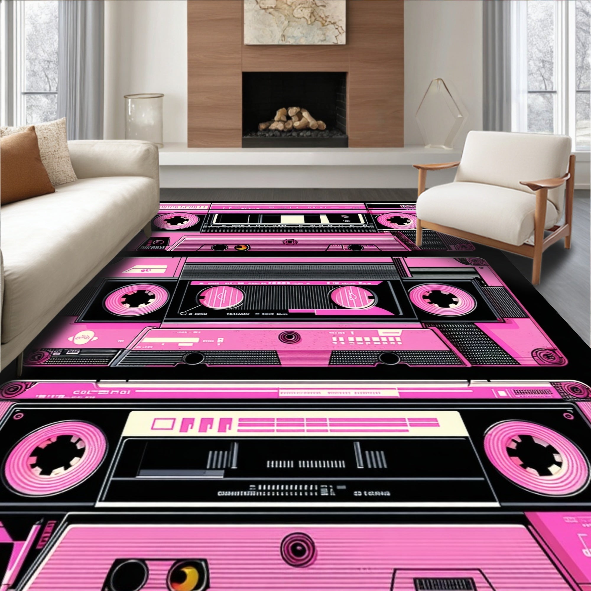 Flatwoven High Traffic Area Rug, Funky Multi Color Audio Vibe, Non Slip, Stain Resistant, Washable Area Rugs for Living Room, Bedroom (Pink) Overview: