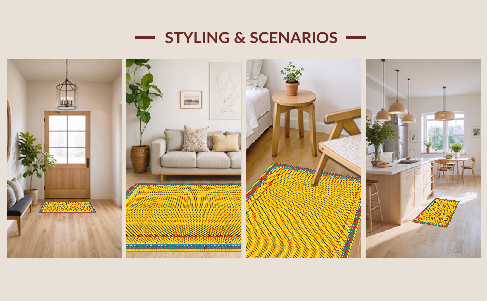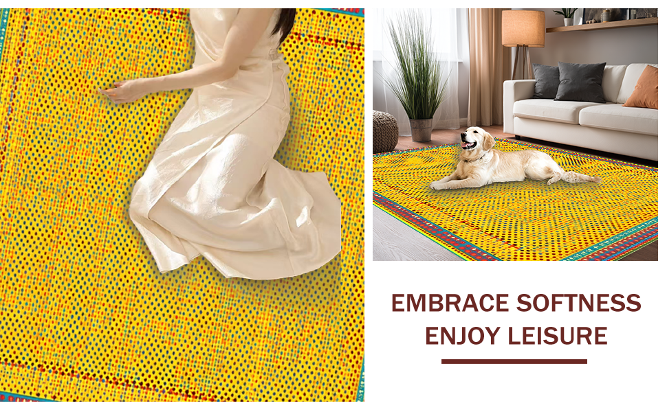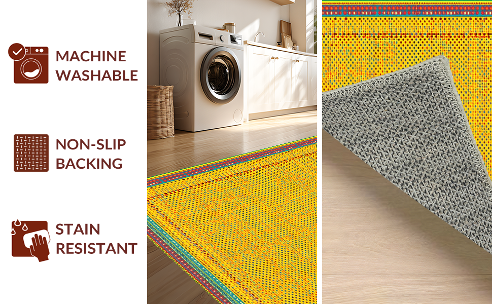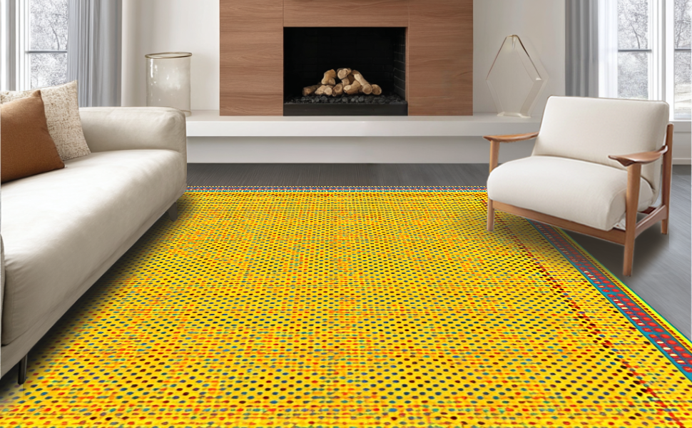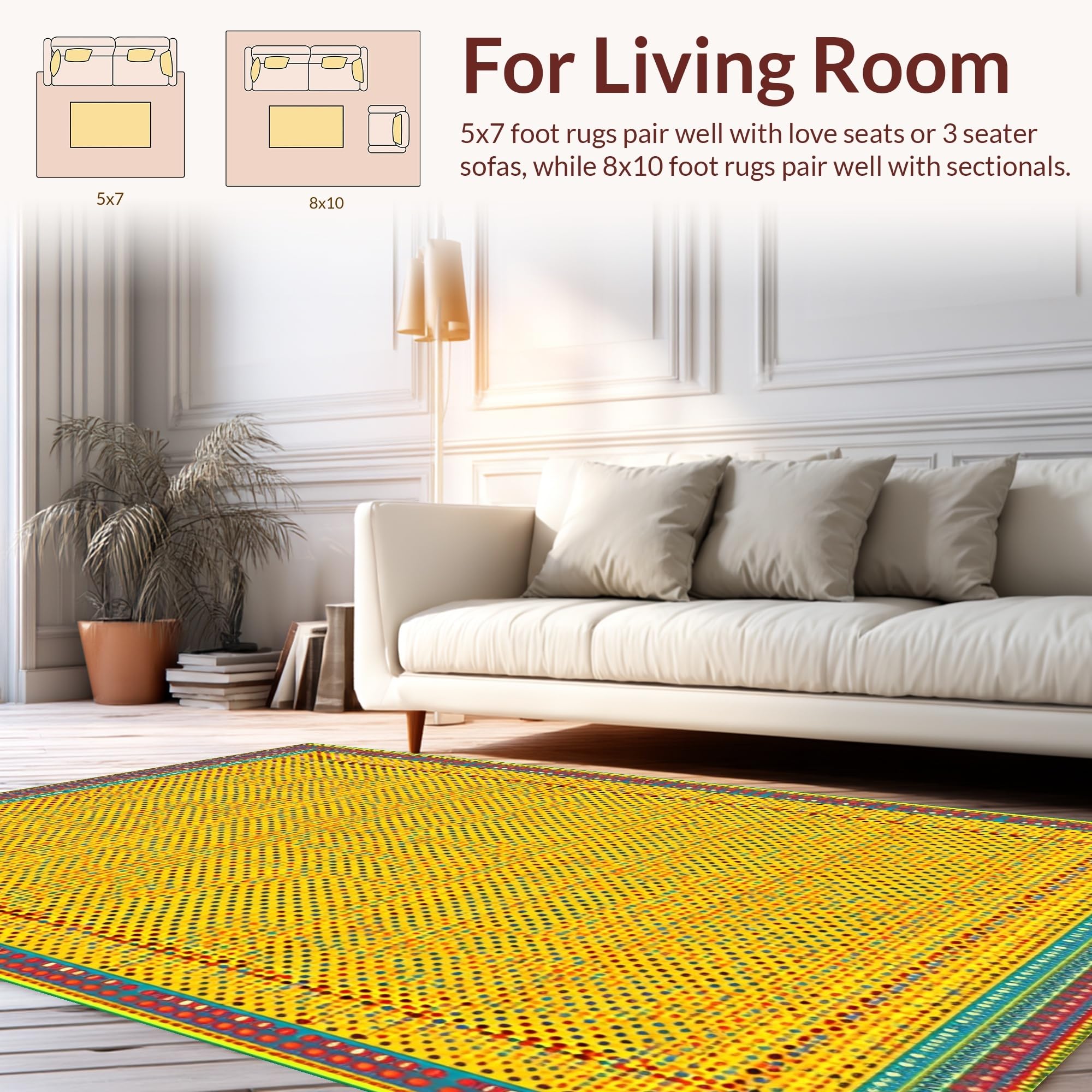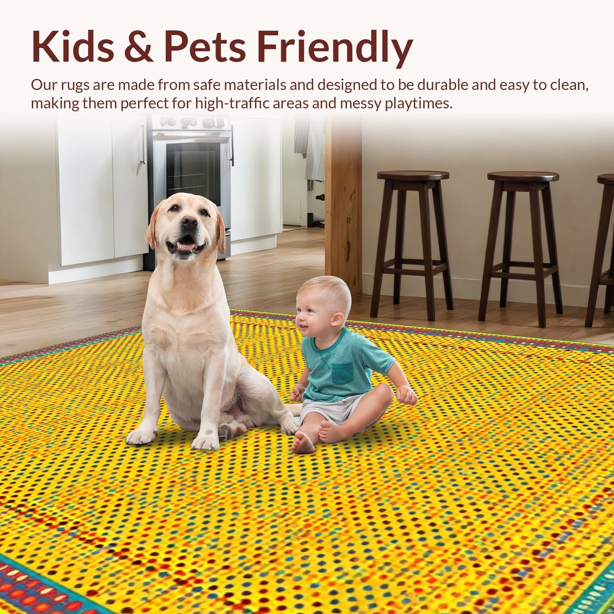 Ultra Soft Area Rug, Non Slip, Stain Resistant, Washable Area Rugs for Living Room, Bedroom, Funky Multi-Hued Patterned Statement Piece(Yellow) Overview: