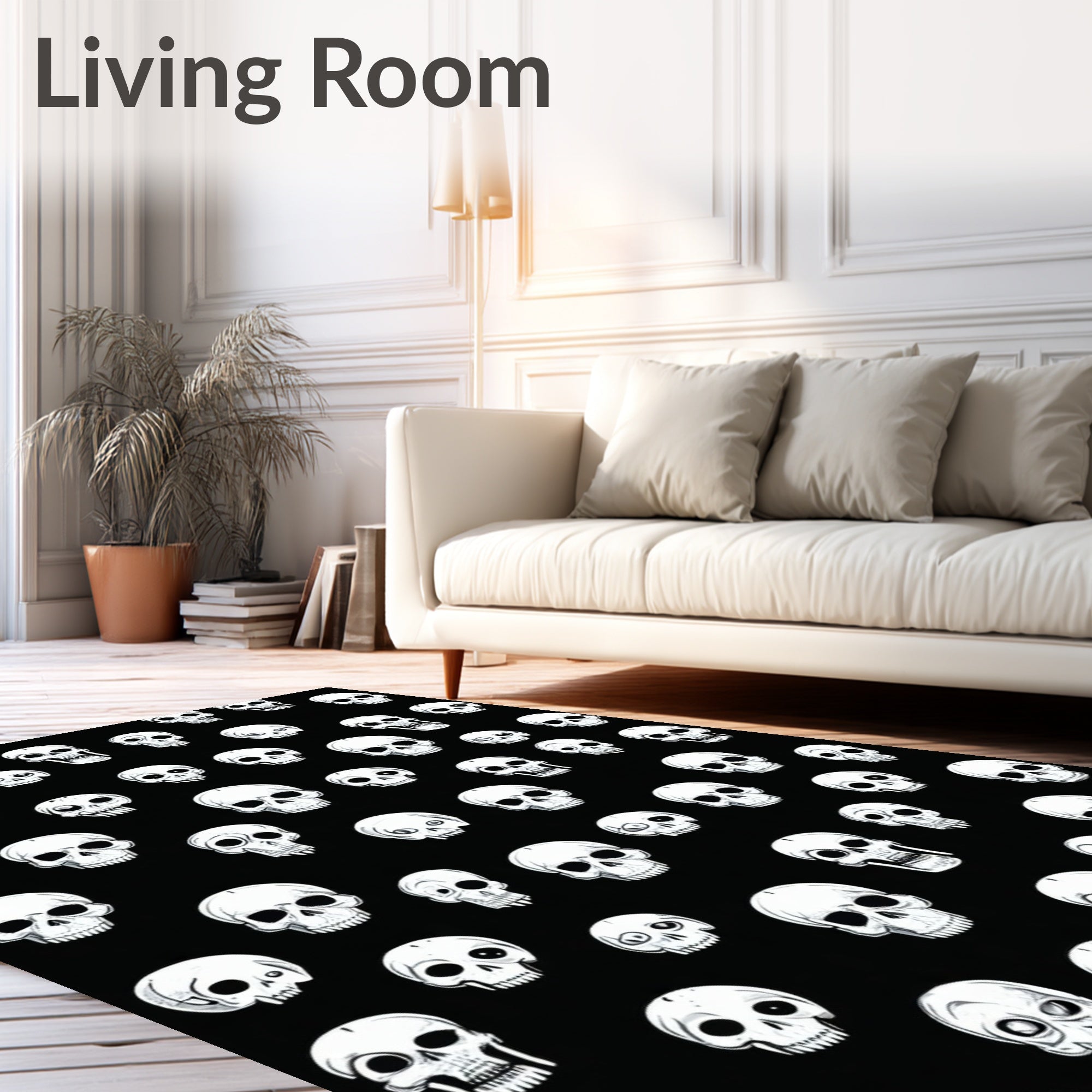 Flatwoven High Traffic Area Rug, Skull Halloween Black and Accent, Non Slip, Stain Resistant, Washable Area Rugs for Living Room, Bedroom (Black) Overview: