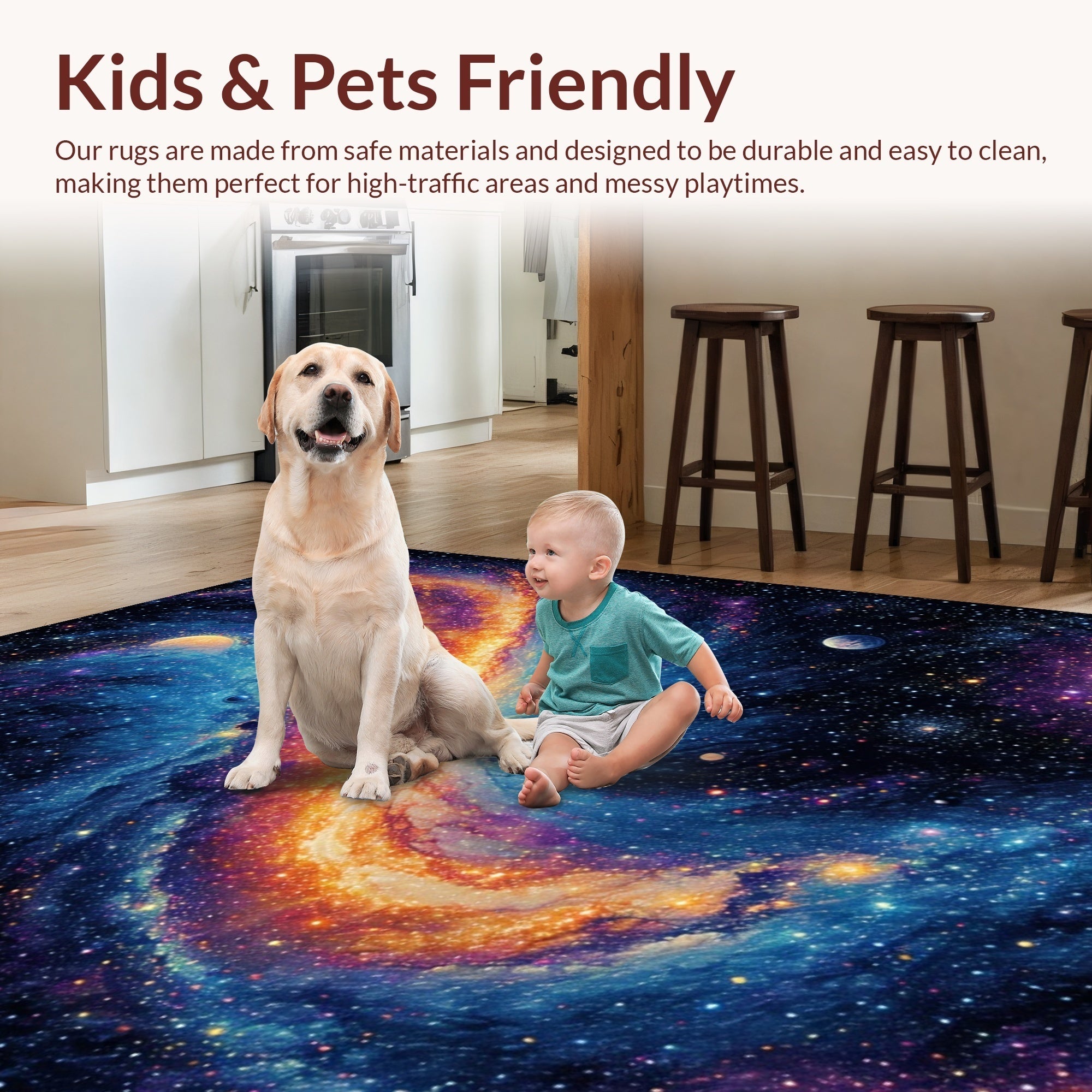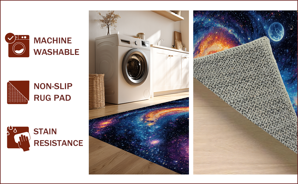 Ultra Soft Area Rug, Non Slip, Stain Resistant, Washable Area Rugs for Living Room, Bedroom, Galaxy Planet Earth(Blue) Overview: