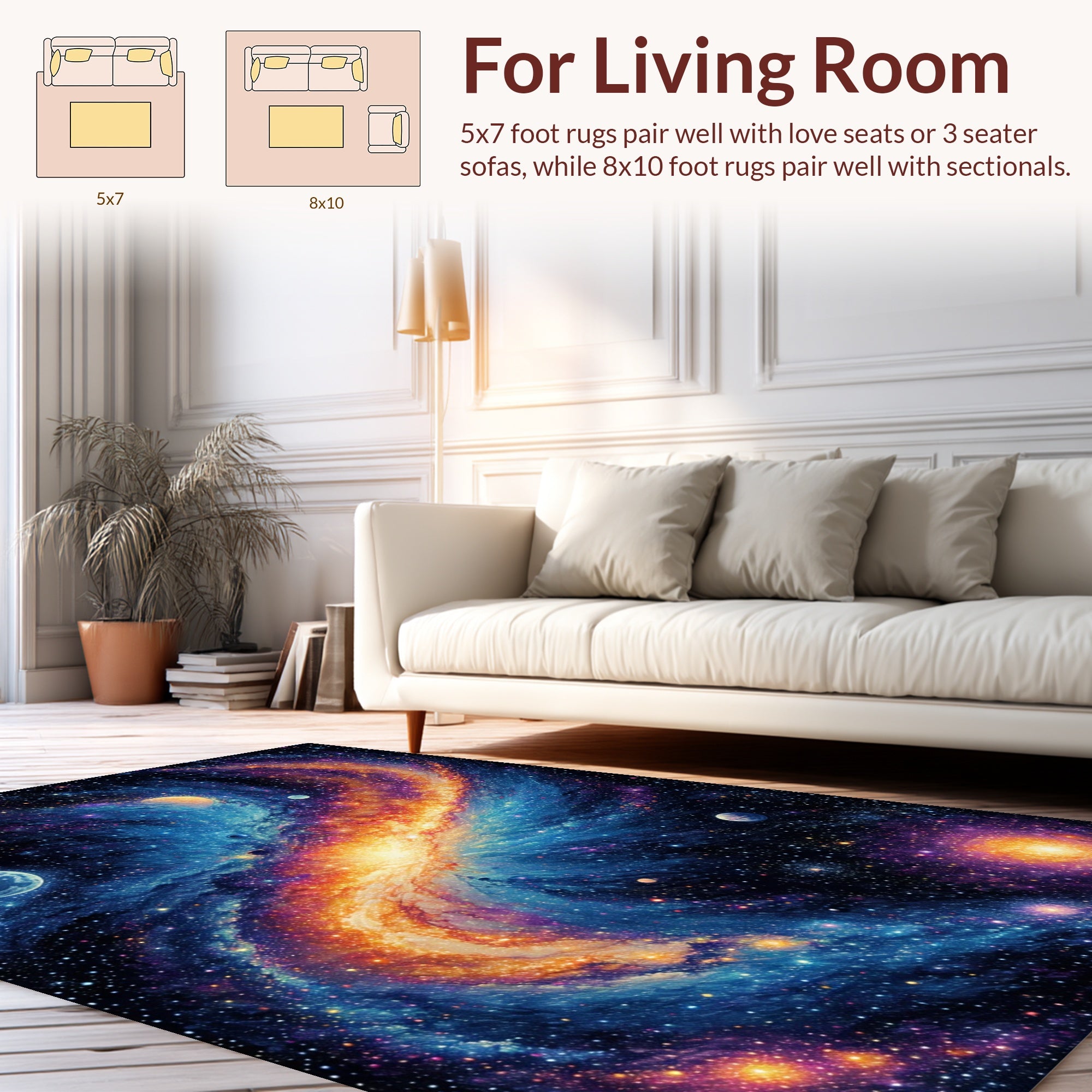 Flatwoven High Traffic Area Rug, Galaxy Planet Earth, Non Slip, Stain Resistant, Washable Area Rugs for Living Room, Bedroom (Blue) Overview: