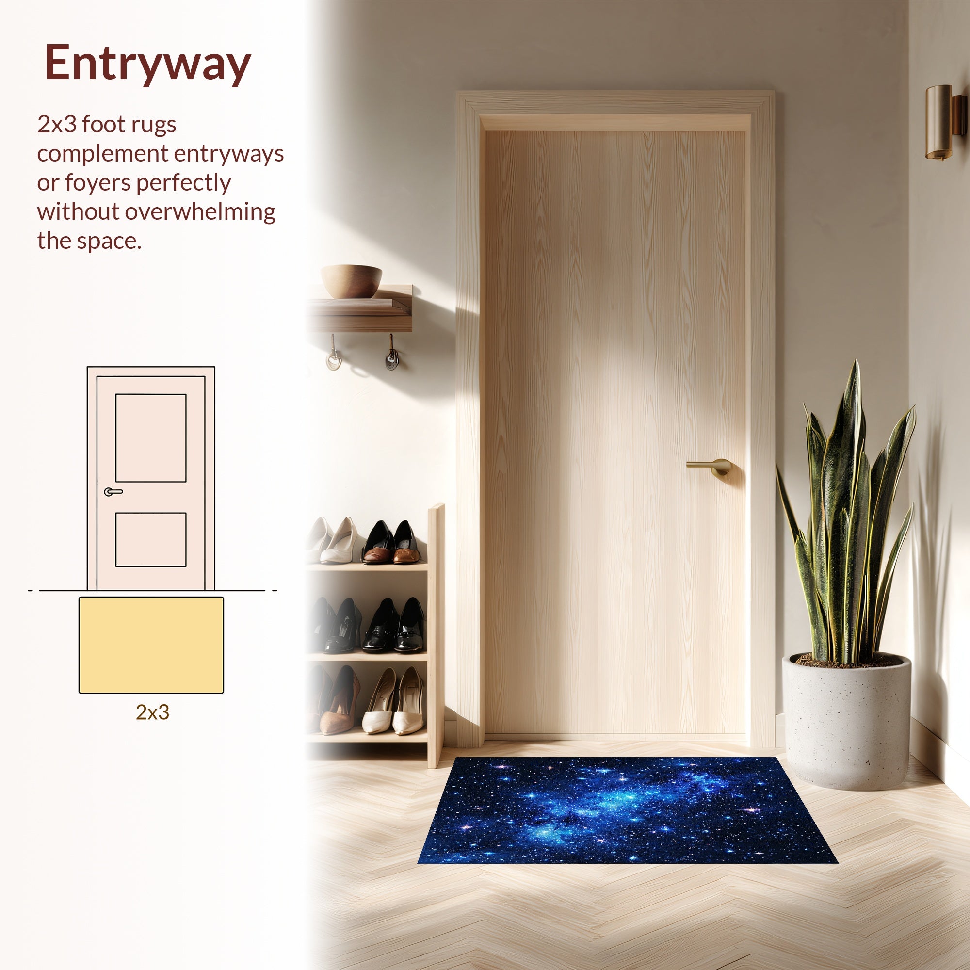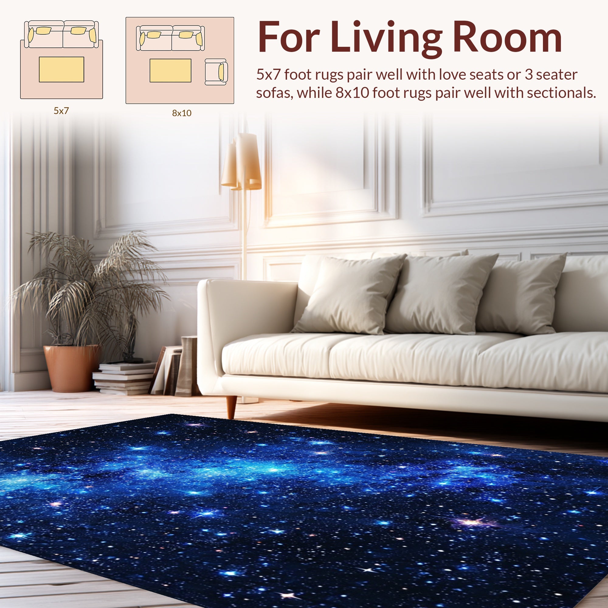 Flatwoven High Traffic Area Rug, Galaxy Starry Sky, Non Slip, Stain Resistant, Washable Area Rugs for Living Room, Bedroom (Blue) Overview: