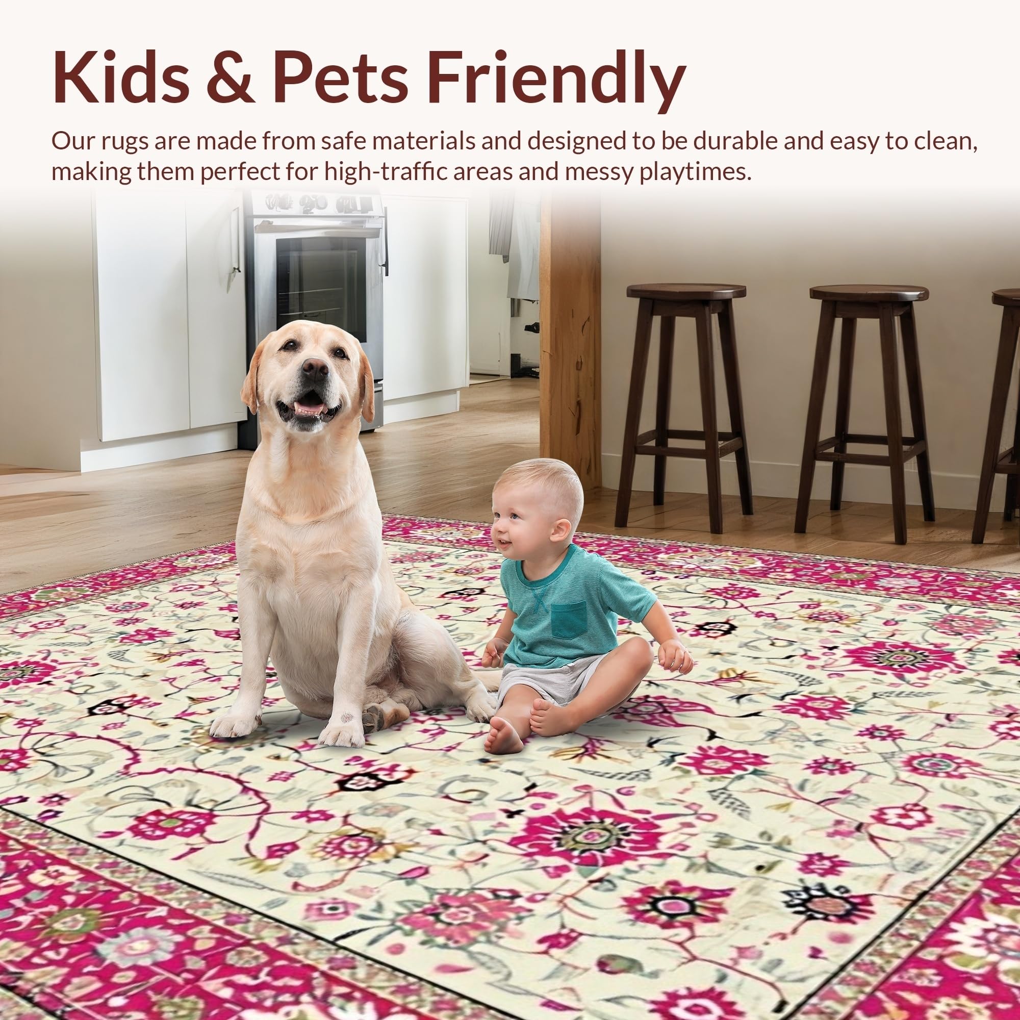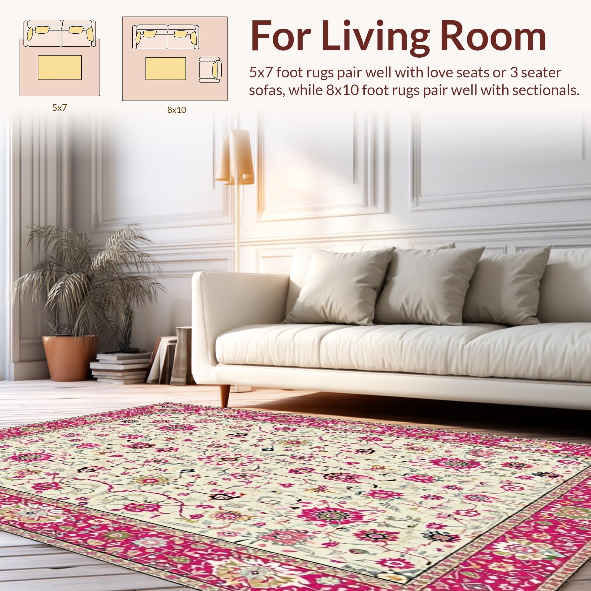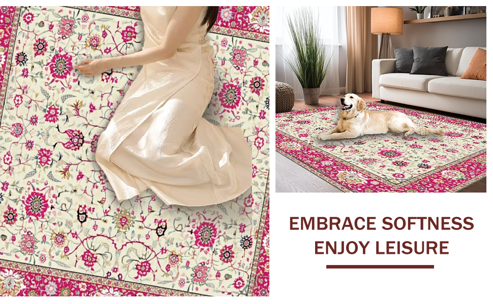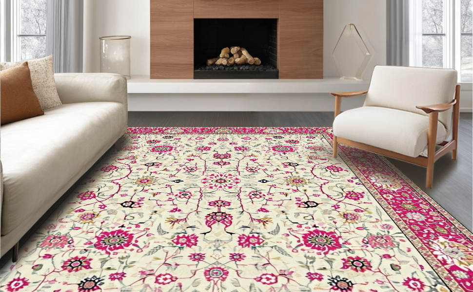 Ultra Soft Area Rug, Non Slip, Stain Resistant, Washable Area Rugs for Living Room, Bedroom, Garden-Inspired Cozy Decor(White) Overview:
