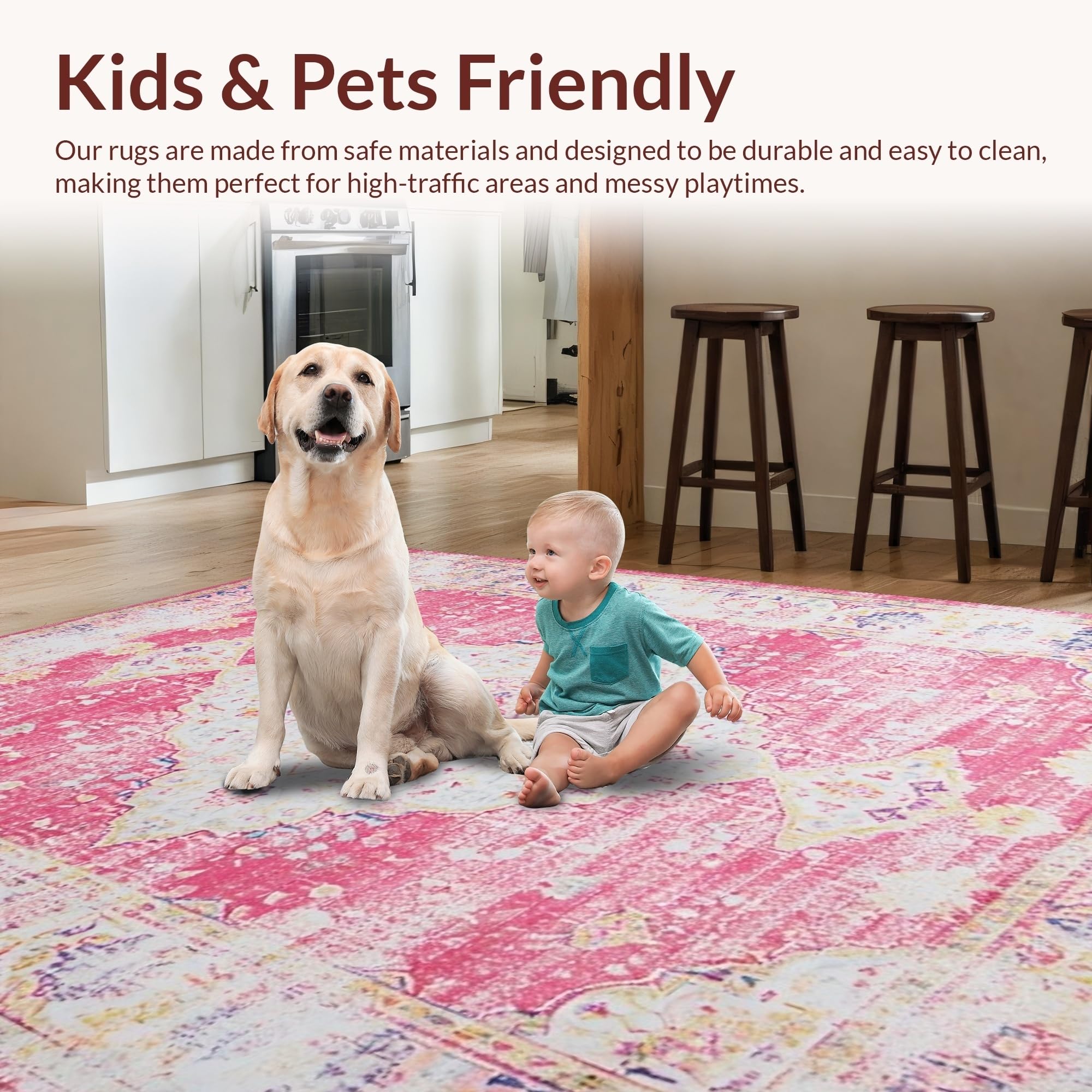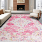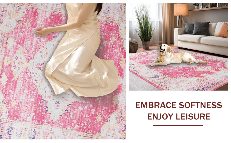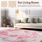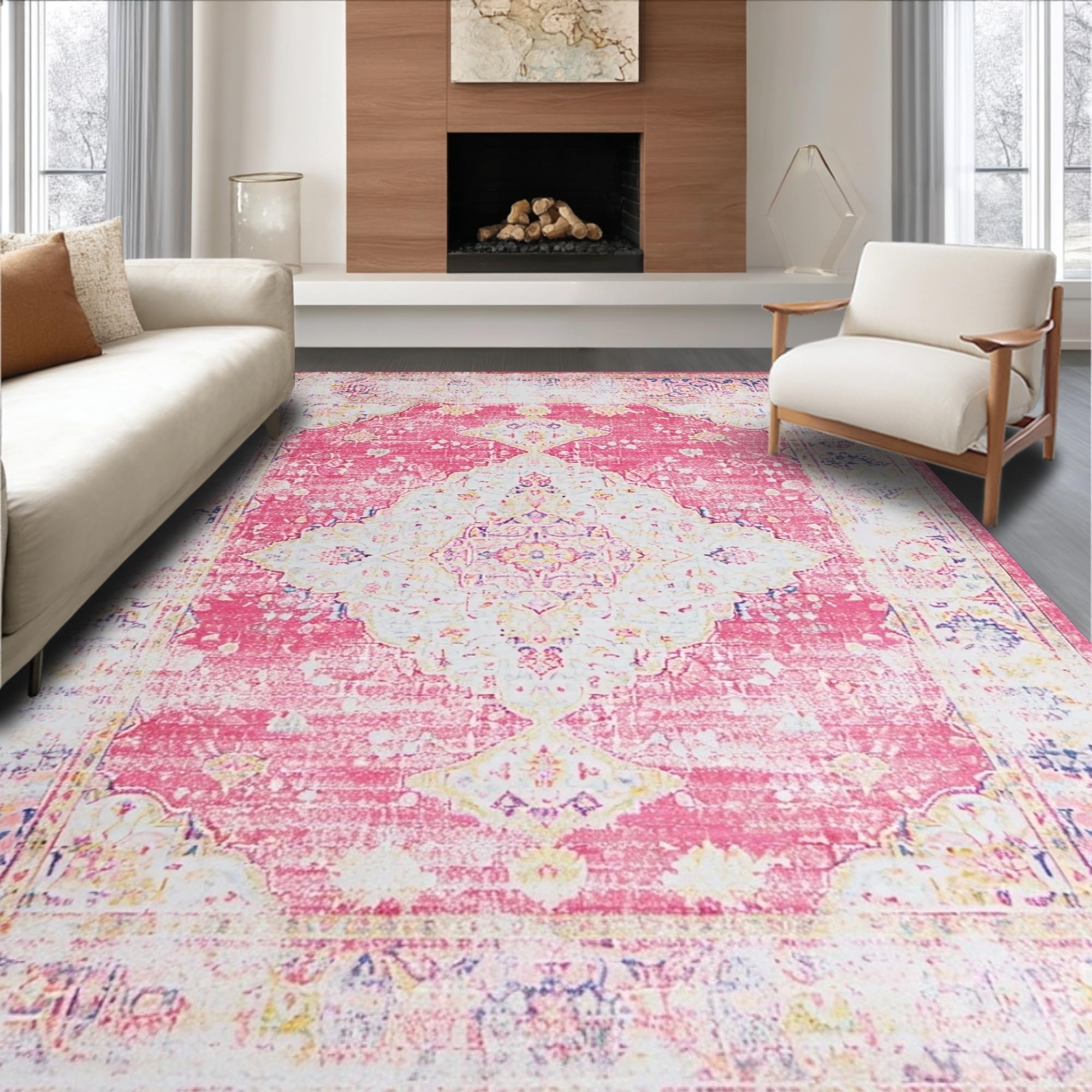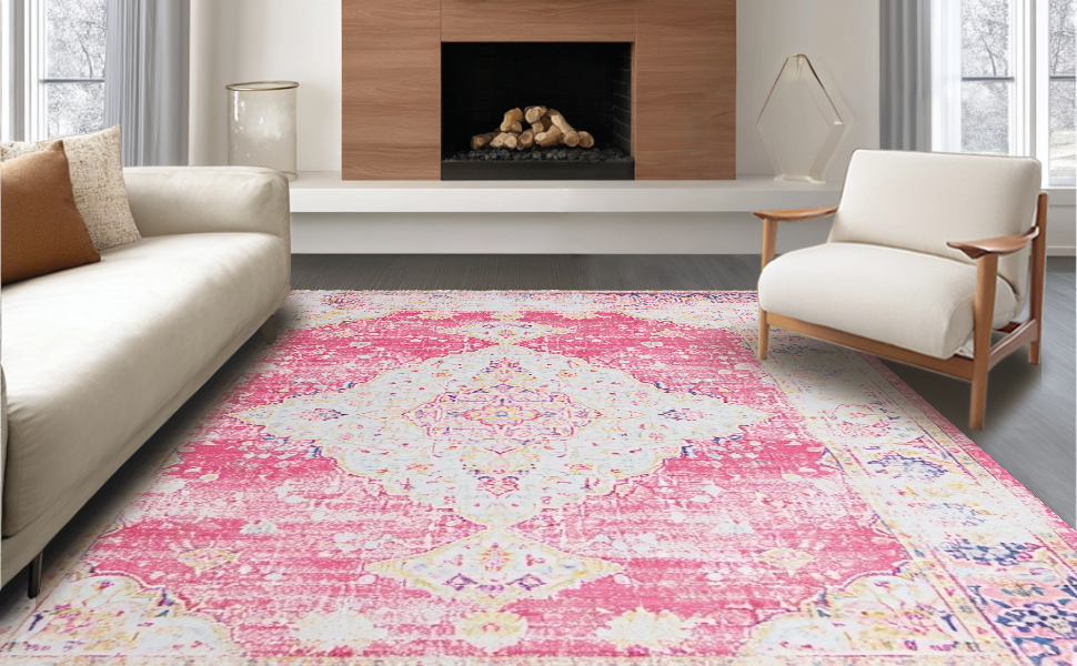 Ultra Soft Area Rug, Non Slip, Stain Resistant, Washable Area Rugs for Living Room, Bedroom, Gently Worn Timeless Geometric Style(Pink) Overview: