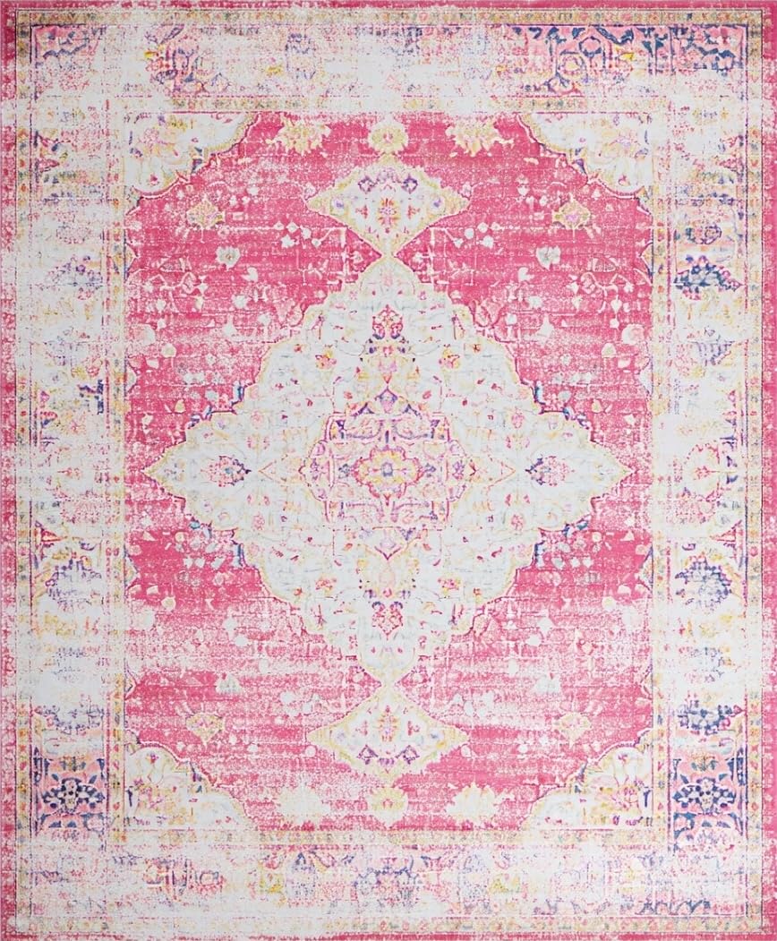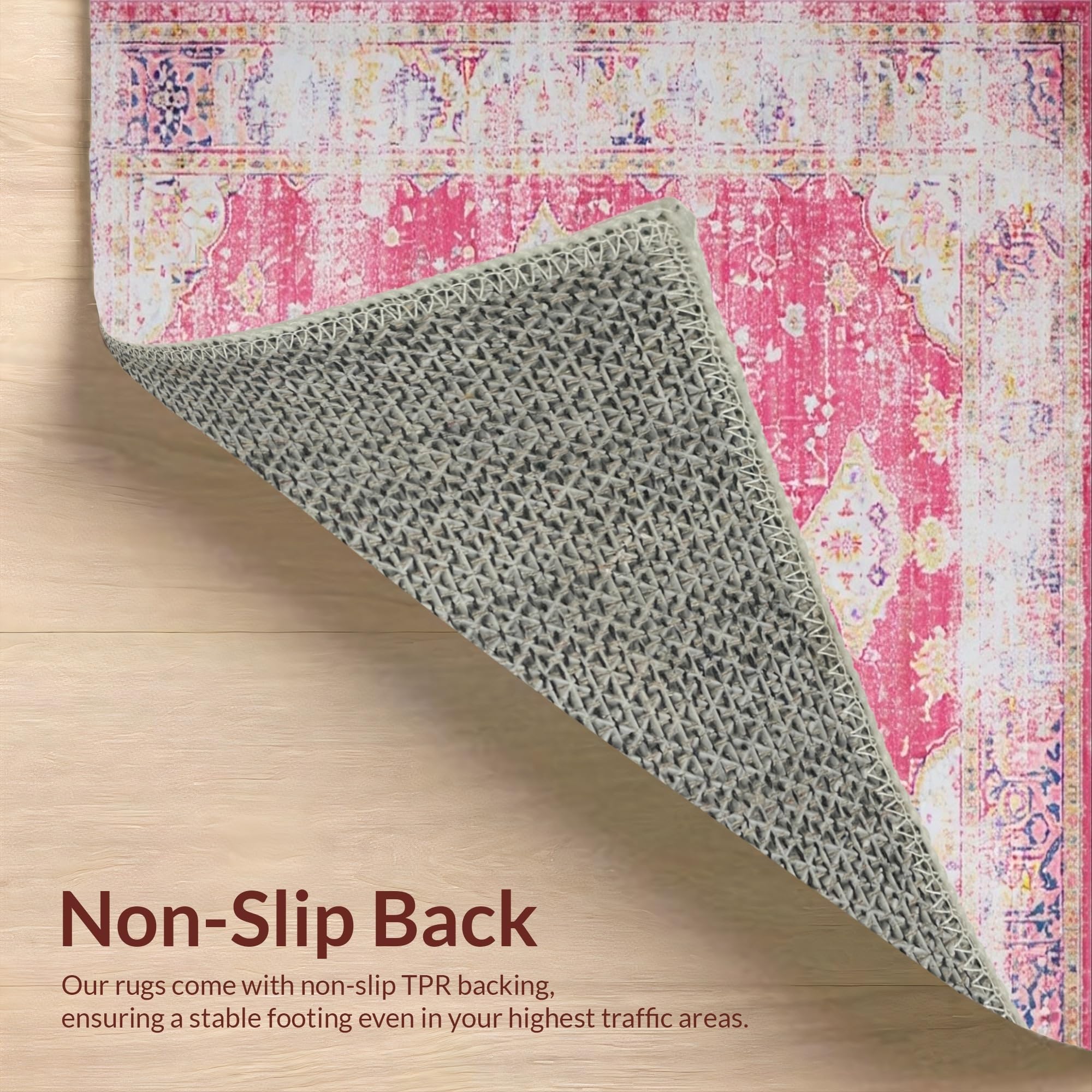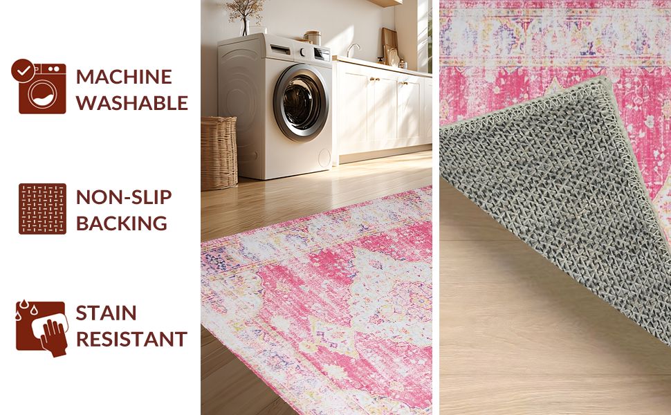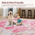 Ultra Soft Area Rug, Non Slip, Stain Resistant, Washable Area Rugs for Living Room, Bedroom, Gently Worn Timeless Geometric Style(Pink) Overview: