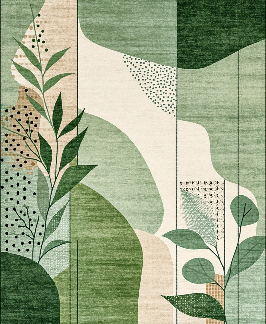 Geometric Abstract Animal Inspired Area with Nature Motifs(Green)