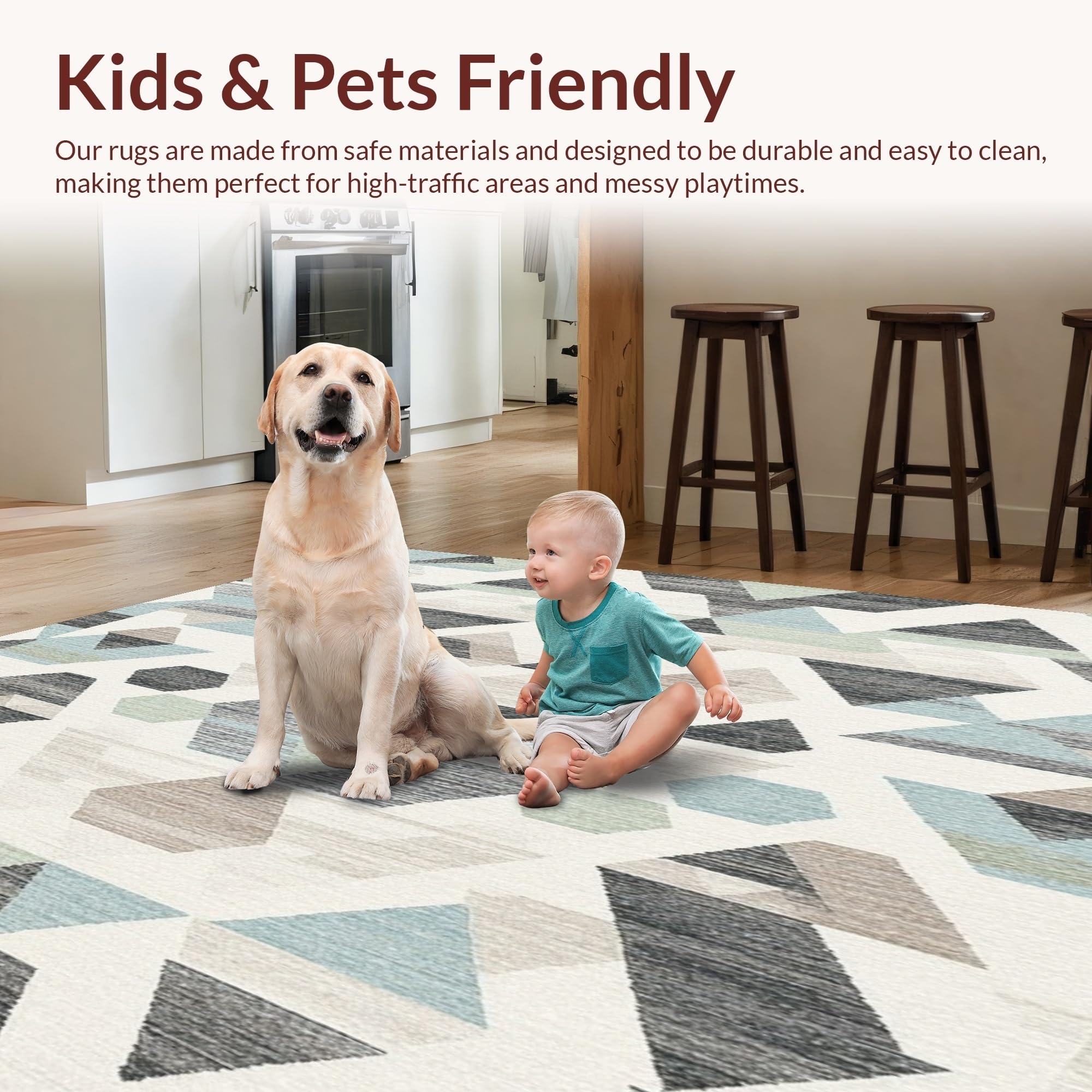 Ultra Soft Area Rug, Non Slip, Stain Resistant, Washable Area Rugs for Living Room, Bedroom, Geometric Boho Cream and Grey(Beige) Overview: